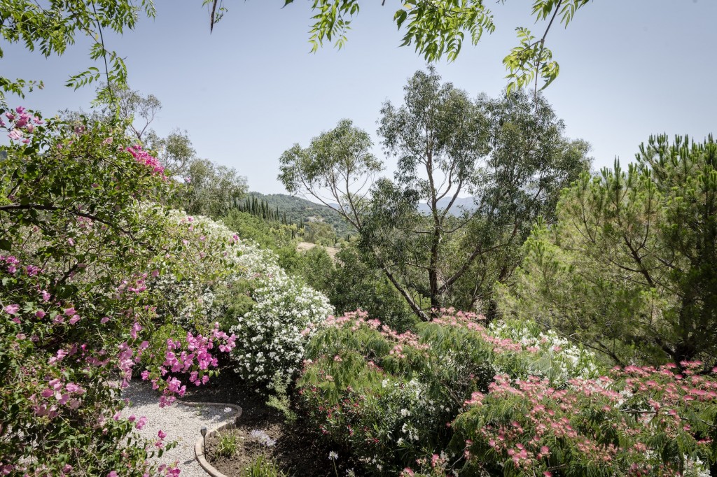 Se accede a la propiedad a través de un camino privado flanqueado por cipreses. La finca se extiende sobre 32.000m² de terrenos cuidadosamente mantenidos, adornados con olivos maduros y terrazas floridas. En su corazón se alza la residencia principal, una elegante casa de 858m² distribuida en tres niveles, que combina la arquitectura tradicional con un confort refinado.
