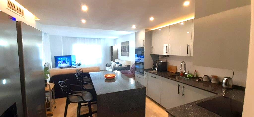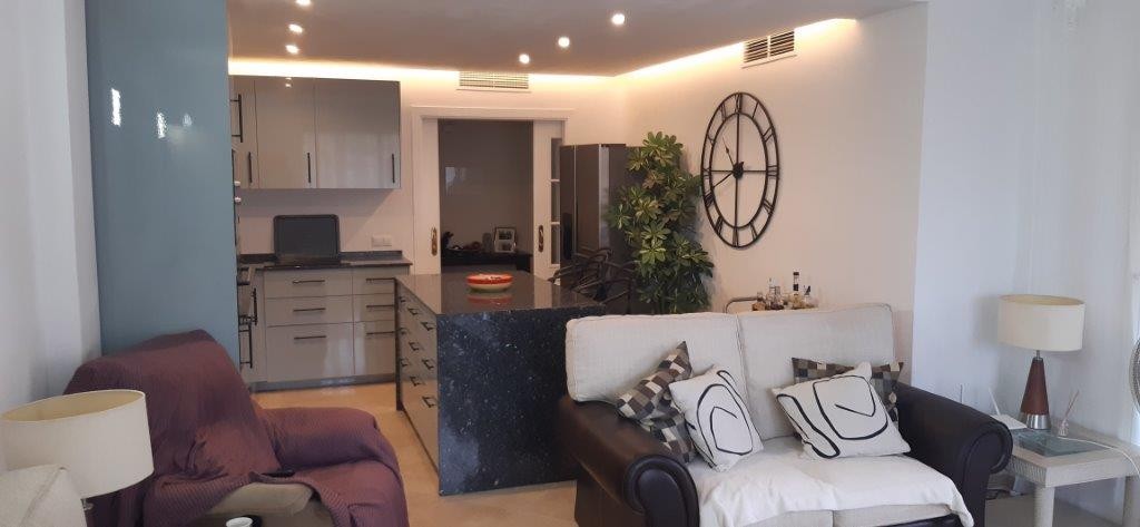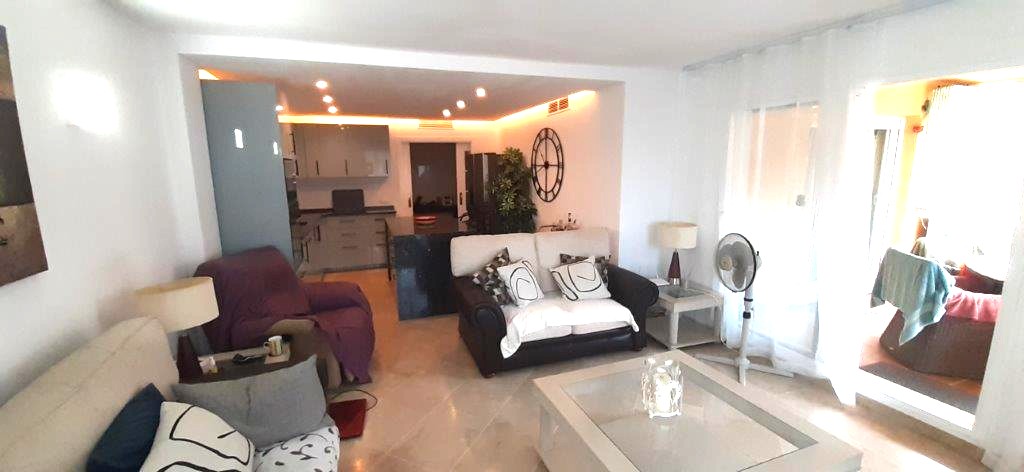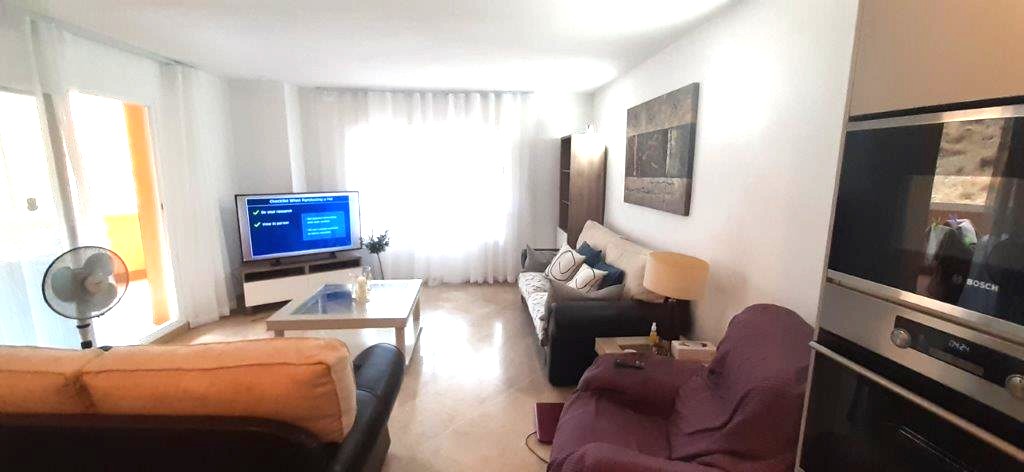LARGE MODERN QUALITY 2 BEDROOM APARTMENT In Calahonda. Spacious modern apartment in the upper part of Calahonda with 2 bedrooms, 2 bathrooms shower, (another bedroom has been added therefore the property has 3 bedrooms now) a spacious living and dining room, a fully equipped kitchen, and a large double terrace. Air conditioning, Offered fully furnished and equipped. Large gardens and a pool. Parking space included. Large garden and pool area. Gated community pleasant environment. NO AGENTS