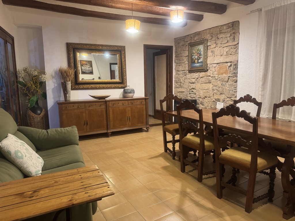 La vivienda cuenta con 4 plantas y conserva el encanto original con vigas de madera, paredes de 50 cm y acabados en piedra.