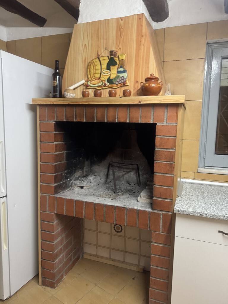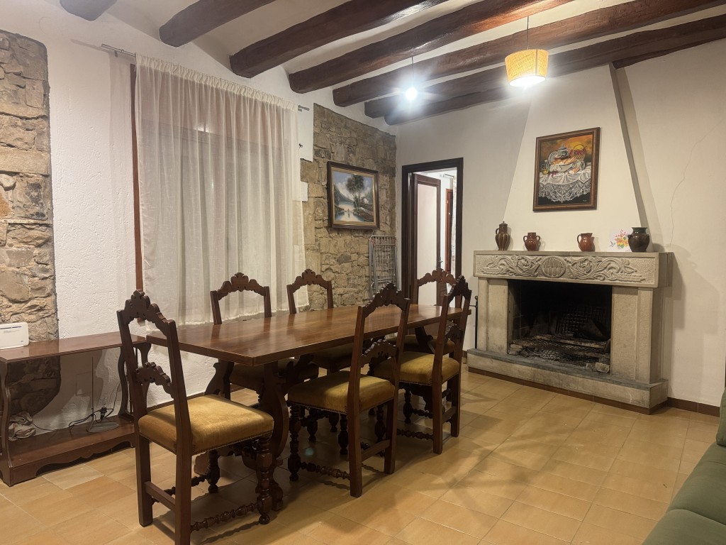 Primera planta (113 m²): distribuidor, baño con ducha de obra, cocina con chimenea y salida a un agradable patio. En esta misma planta encontramos un gran comedor con chimenea, dos dormitorios dobles y uno individual.
