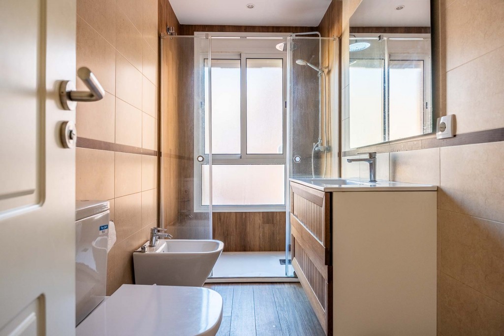 Con una cocina moderna y abierta al salón, pensada para quienes disfrutan cocinando mientras conversan, ríen o comparten una copa con los suyos. Un espacio que conecta, no separa. Y con lavadero independiente exterior para mantener el orden sin perder estilo.