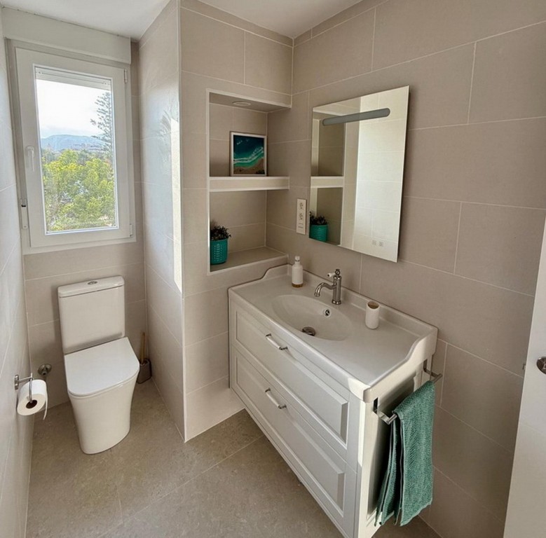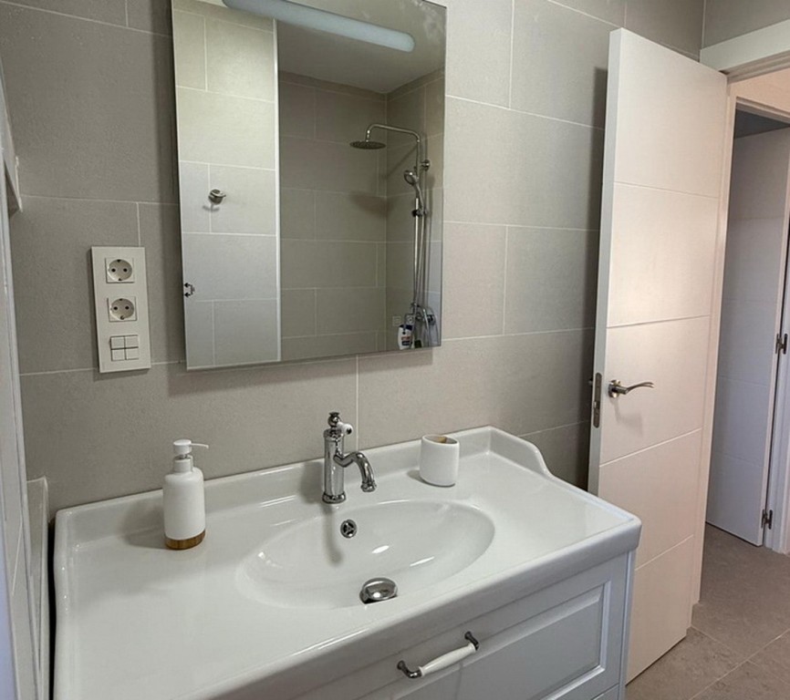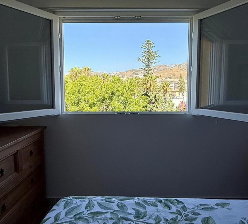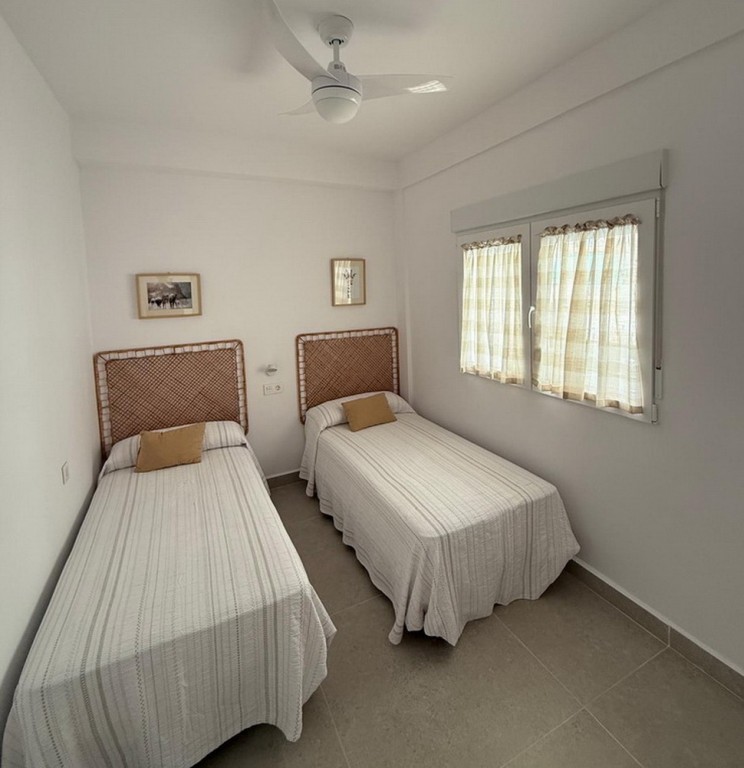 Luminoso piso de 85m2, sol de mañana y de tarde, recién reformado íntegramente, 3 dormitorios, 1 baño, aire acondicionado y ventiladores de techo, cocina independiente con lavadero, amplio salón con terraza con tres zonas diferentes, vistas al mar y a la playa.