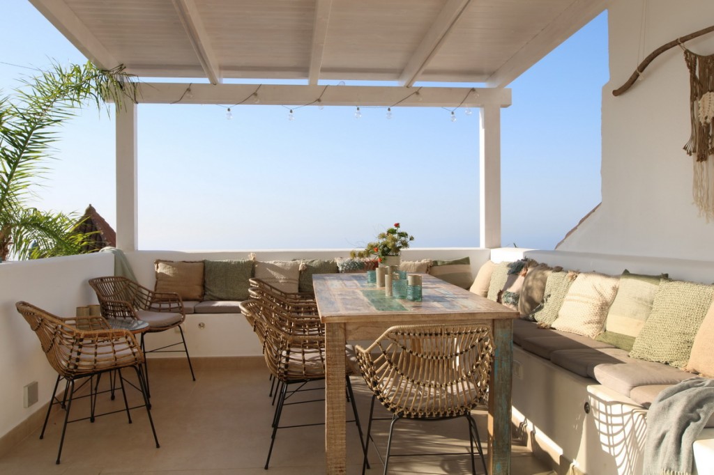 Si subimos a la planta superior, encontramos la suite principal, con su propio baño y una magnifica terraza, donde aislarse del bullicio del resto de la casa, con unos anocheceres de película.