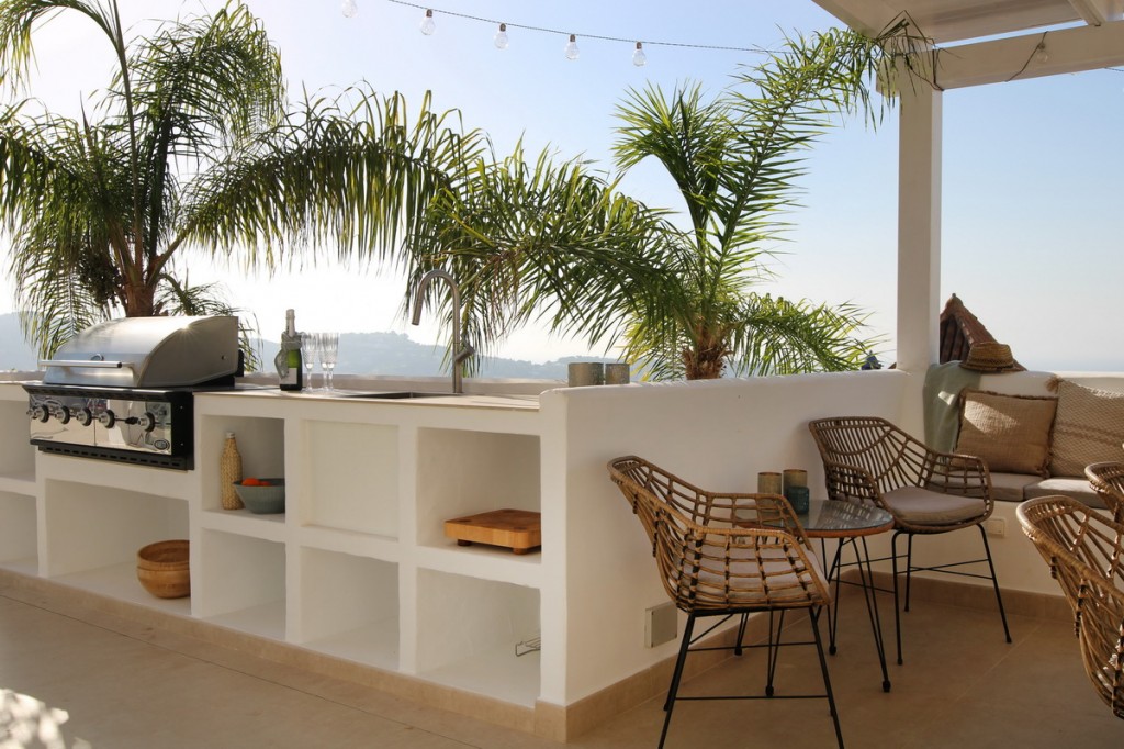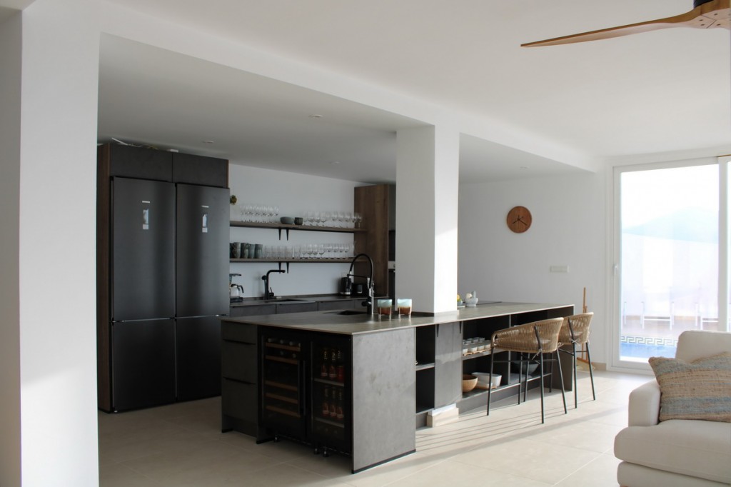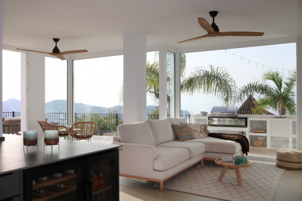La casa de 260 m2, Se divide en cuatro plantas y una habitabilidad de 6 dormitorios y 6 baños (12-14 personas) todo con fantásticas vistas al mar mediterráneo y a la preciosa bahía.