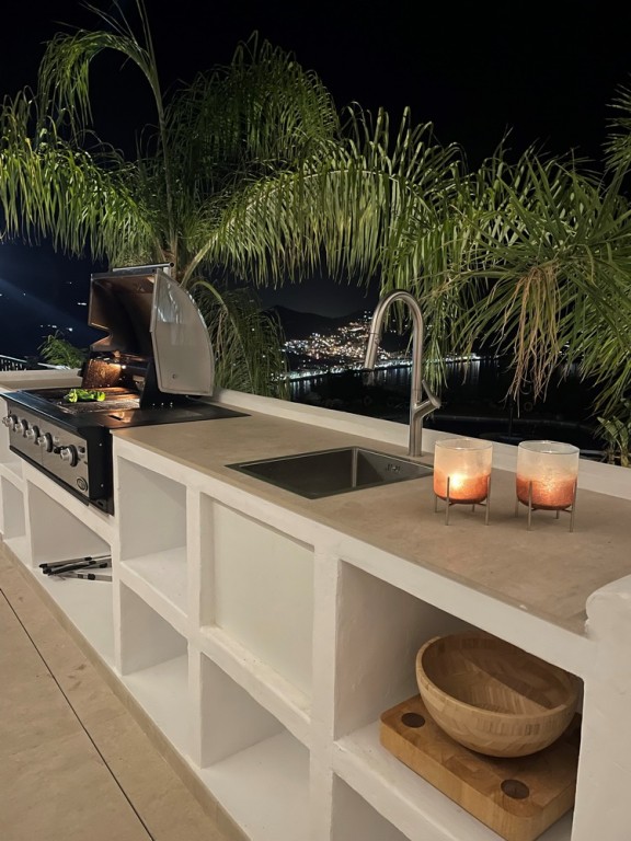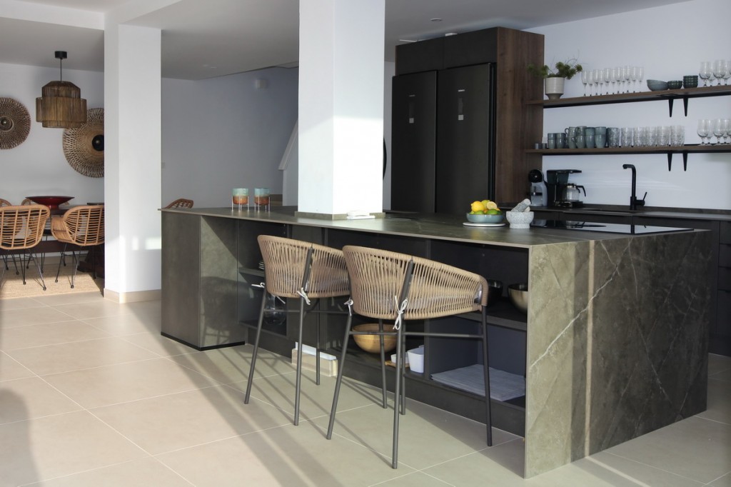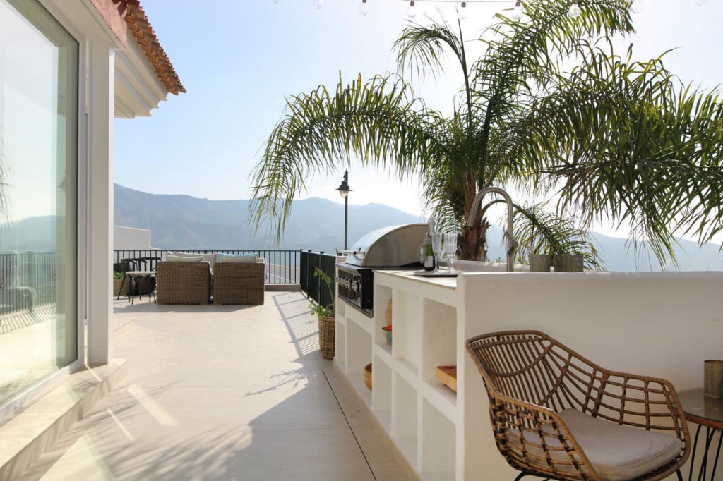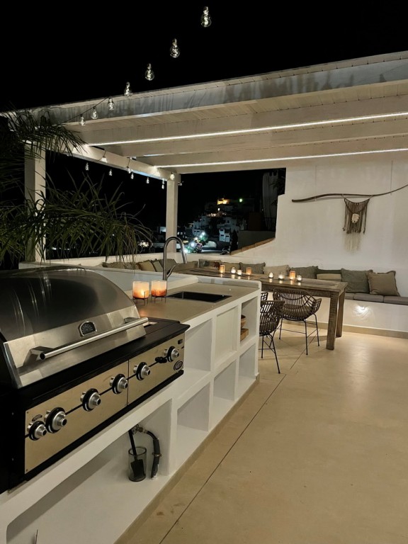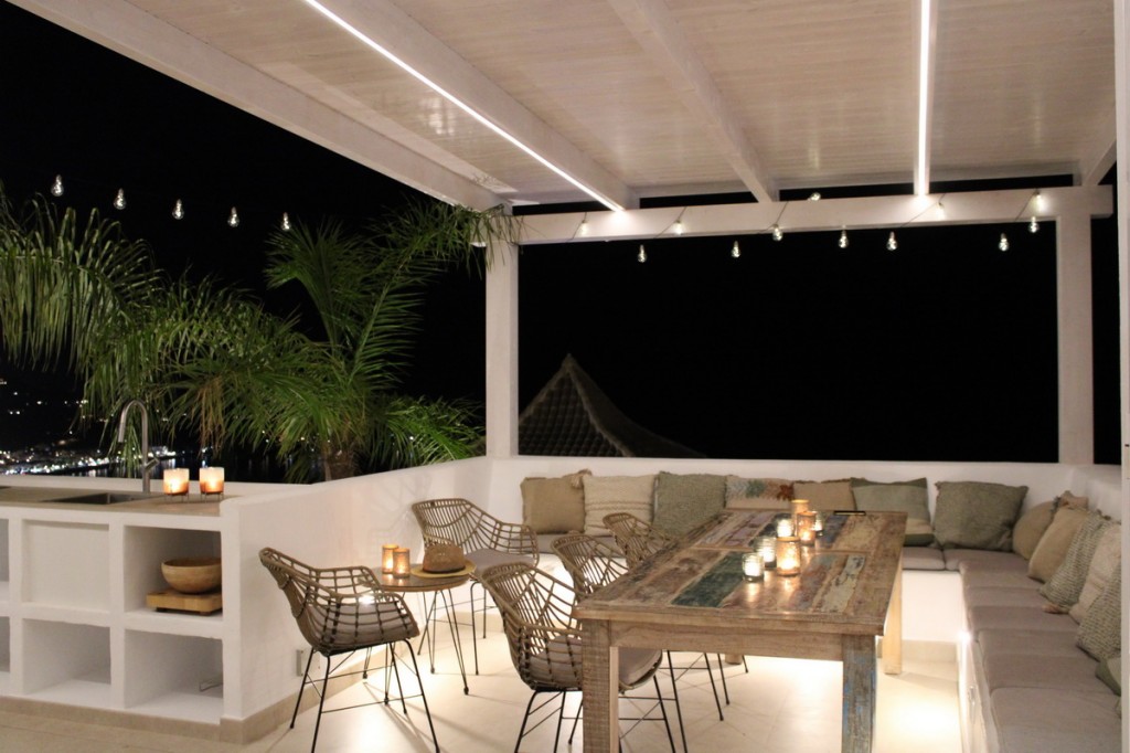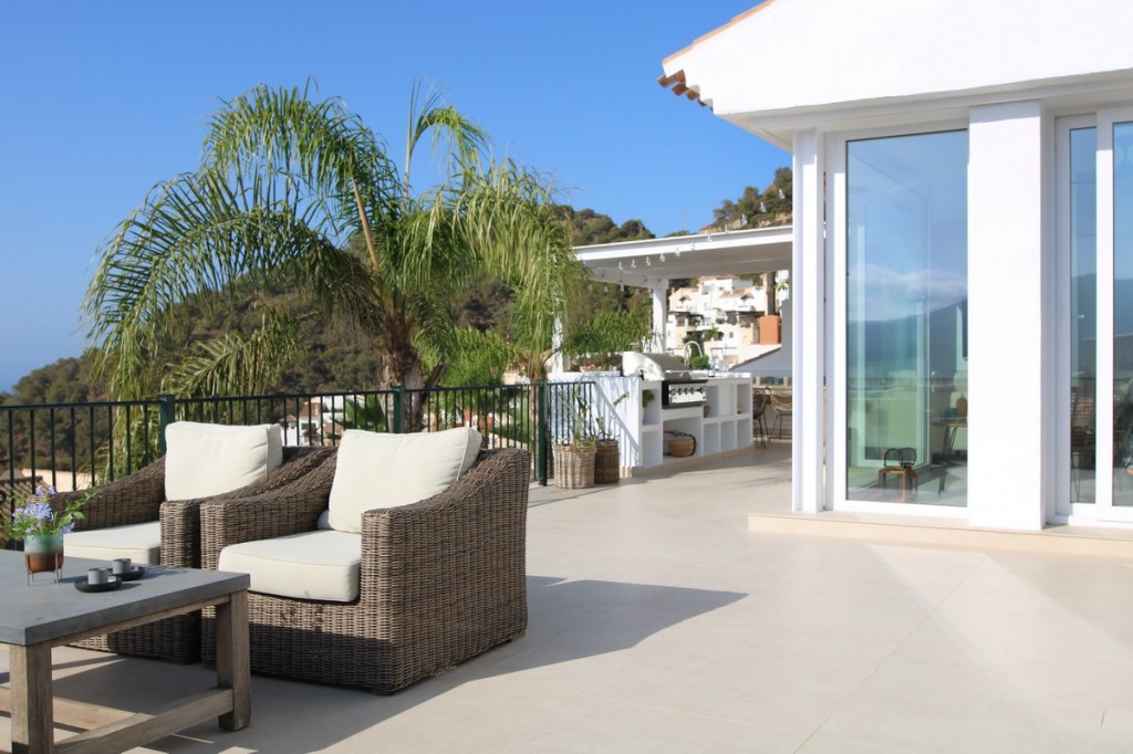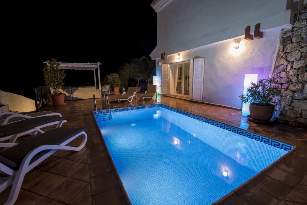 Empezamos la visita por la planta principal, donde encontramos la estupenda piscina climatizada, con una extensa área de solárium, con la zona de cocina/comedor exterior, donde disfrutar de nuestro magnifico clima tropical, con inviernos y veranos muy suaves, fruto de la influencia de Sierra Nevada y la protección de las montañas, lo que permite disfrutar de 320 días de sol al año y una media de 22º todo el año, con unas noches increíbles, que desde esta gran terraza, con su zona de chillout, la disfrutaran a tope toda la familia.