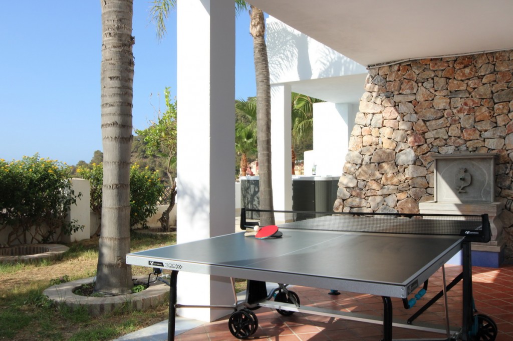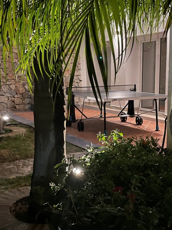 Si bajamos a la planta de abajo, tendremos la zona de ocio, amplia zona verde, de jardín, con mesa de pingpong y un amplio jakuzzi-spa parta cuatro personas, sin duda, una de las plantas que más disfrutaremos.