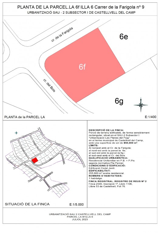Situada en Castellvell del Camp, Les Estries se integra plenamente en el paisaje de montaña, regalando vistas impresionantes al valle y al mar. Su proximidad a Reus, a solo 5 minutos, y las excelentes conexiones con el aeropuerto y Tarragona, a poco más de 15 minutos, convierten este lugar en el entorno ideal para establecer su residencia definitiva.