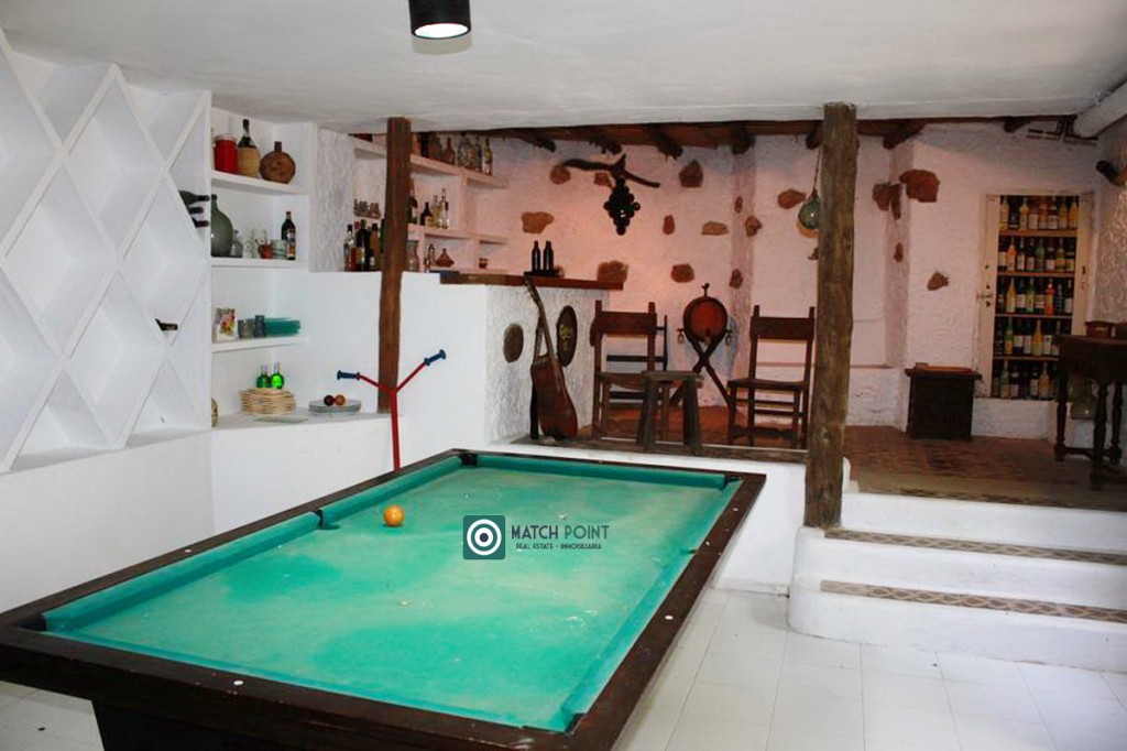 Desde aquí podemos bajar a la zona de invitados, 118m2, donde encontraremos, aparte de una agradable zona común, con una gran mesa, dos dormitorios suite, independientes completamente, con acceso directo desde la calle por una escalera lateral, con acceso por la finca colindante al camino que nos baja a la playa en unos minutos, donde también se encuentra la vieja bodega y zona de billar, donde se podría hacer otro dormitorio más si hiciera falta.