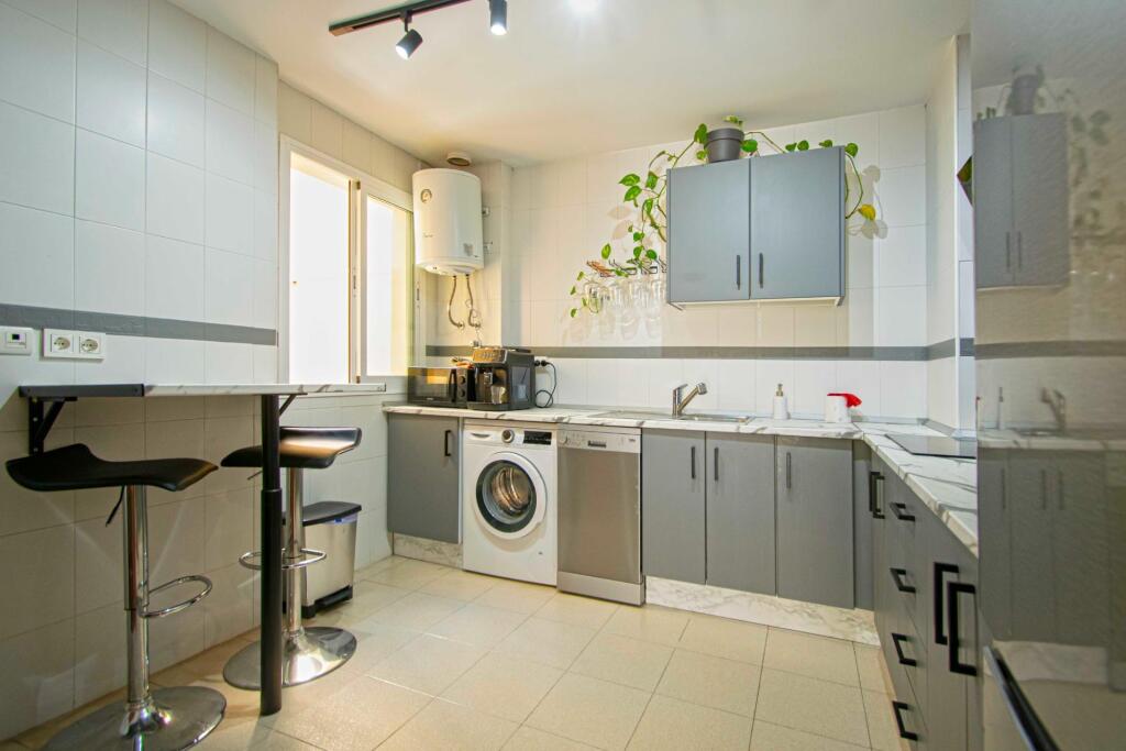 Gran vivienda en Camas lista para entrar!!!Muy bien situada, junto Instituto Tartessos y con todo tipo de servicios a su alcance, comercios, colegios guarderías.....El inmueble dispone de 98,91m2 construidos con excelente distribución.El salón es de paso, amplio y cómodo, con acceso a terraza con toldo, muy luminoso.La cocina es independiente y se encuentra amueblada, cómoda y práctica, con alacena y zona desayuno.El piso dispone de tres dormitorios exteriores, el principal con armario empotado y dos baños exteriores y completos, uno con bañera y otro con placa de ducha, muy luminosos. En el vestidor hay un armario empotrado extra perfecto para almacenaje.Las ventanas son de aluminio lacado en blanco, las puertas de madera y el suelo de terrazo. Cuenta con dos splits de aire acondicionado, termo de 50 litros y plaza de garaje en sótano. Bloque con ascensor.Con excelente orientación Sur, exterior, muy luminoso y muy bien comunicado con Sevilla. No dude en solicitar visita.Informamos a nuestros clientes compradores que el precio de venta no incluye lo siguiente: Honorarios de la agencia inmobiliaria, Impuestos (I.T.P., I.V.A. o A.J.D., en su caso) ni otros gastos de la compraventa (gastos de Registro de la Propiedad, Notaría, Gestoría ni de posible Financiación). Documento F.I.S. a disposición del consumidor según Decreto 218/2005 Junta de Andalucía.