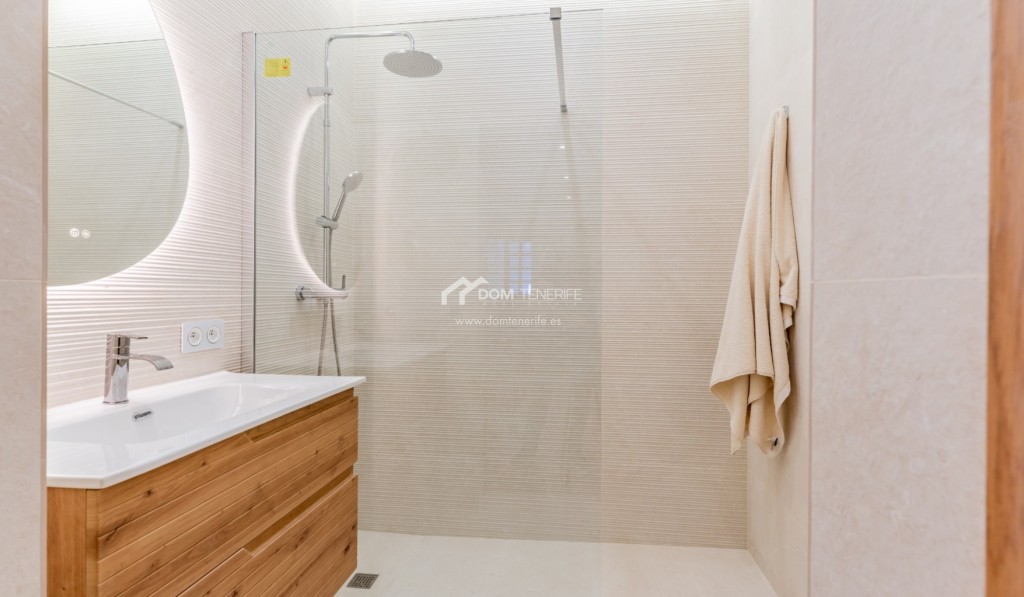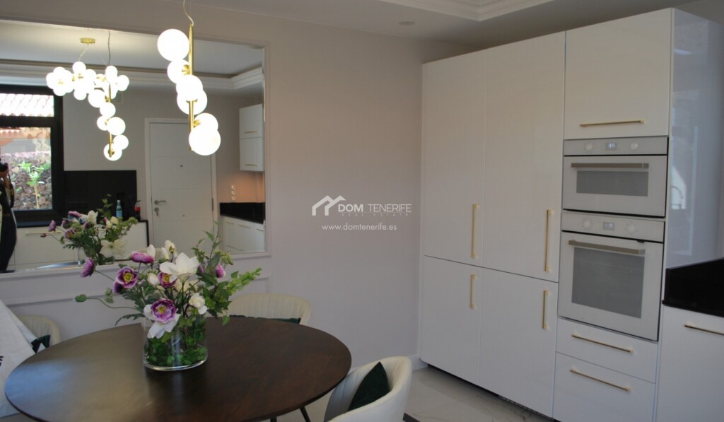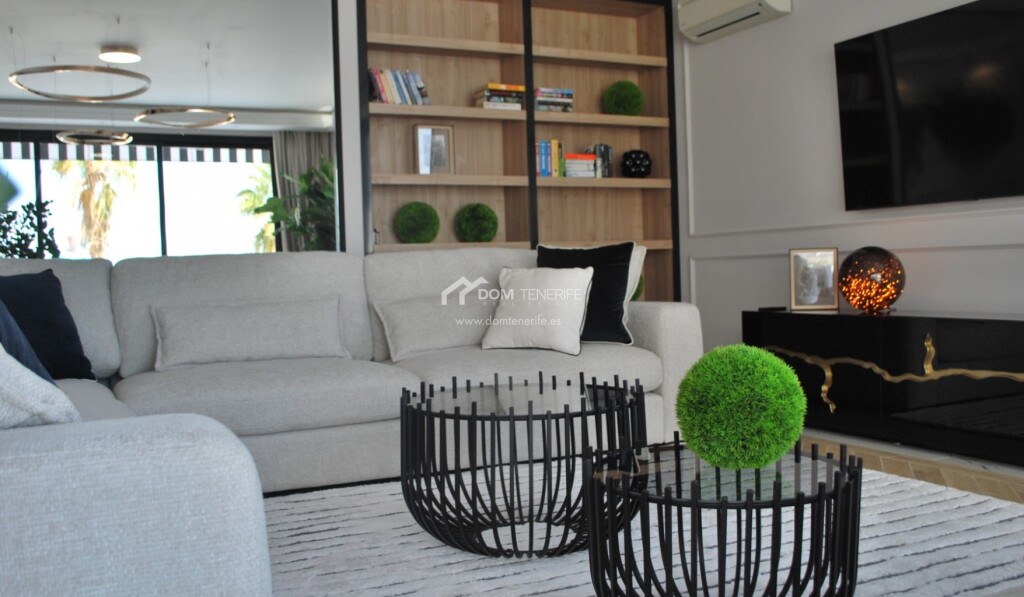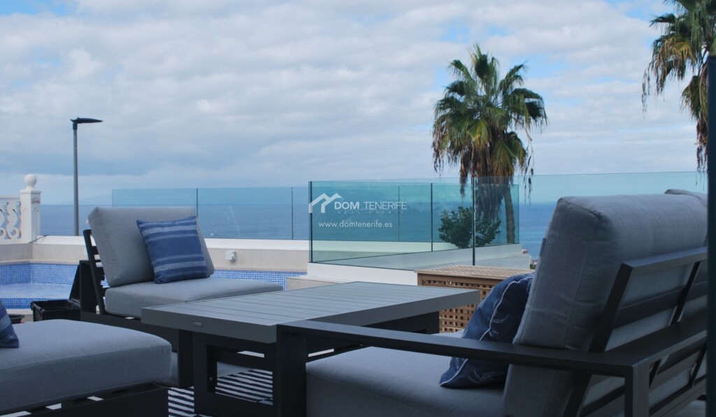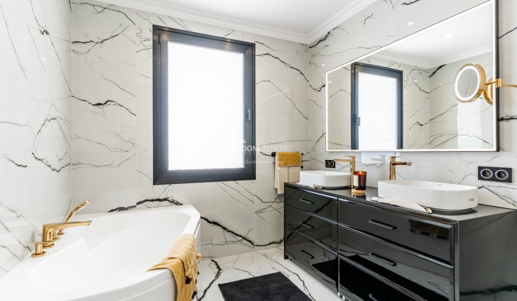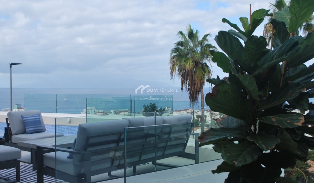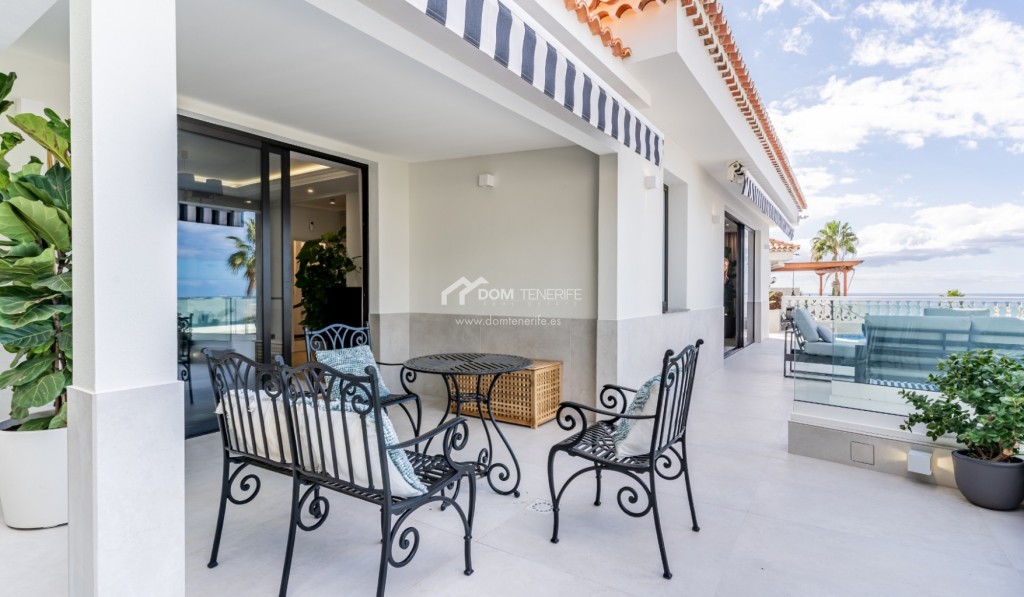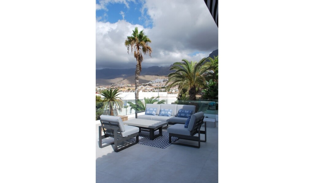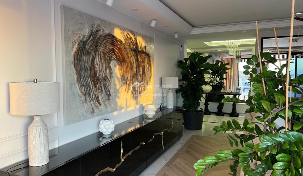 DOM TENERIFE –COMPRAR CON SEGURIDAD. Esta magnífica villa de lujo está situada en la exclusiva zona de San Eugenio Alto, en Costa Adeje, y ofrece unas vistas incomparables del océano y de la isla de La Gomera. Desde el salón, el dormitorio principal, las terrazas y la piscina privada, podrá disfrutar de un paisaje único con vista a la costa y al mar que solo una propiedad como esta puede ofrecer. La ubicación estratégica de la villa permite contemplar espectaculares puestas de sol, el azul intenso del océano y las luces parpadeantes de la ciudad, creando el escenario perfecto para disfrutar de una vida de lujo, confort y privacidad. Esta excepcional villa independiente, totalmente reformada y lista para entrar a vivir, se distribuye en dos plantas. En la entrada encontramos un garaje y un estudio completo ideal para invitados. Subiendo la escalera accedemos a la vivienda principal, que cuenta con una piscina privada, 3 dormitorios (uno de ellos en suite), 2 baños completos, un aseo de invitados, una oficina/despacho, una cocina independiente completamente equipada y amplias terrazas que rodean la casa, ofreciendo espacios perfectos para relajarse y disfrutar de las impresionantes vistas y de atardeceres realmente espectaculares. Las terrazas de la villa rodean toda la propiedad y dan acceso a la piscina. Con acabados de lujo en toda la vivienda e inmejorables vistas al mar y a La Gomera, esta propiedad representa una oportunidad única de adquirir un auténtico -pedazo de paraíso. Como joya adicional, la villa cuenta con una espectacular terraza superior tipo chill-out con vistas panorámicas a La Gomera, ideal para disfrutar de momentos inolvidables. No pierda la oportunidad de hacer suya esta excepcional propiedad. Llámame ahora para una visita.