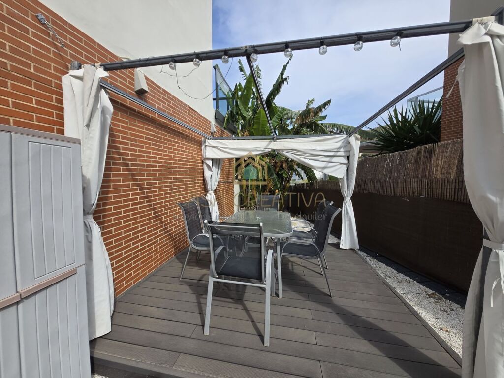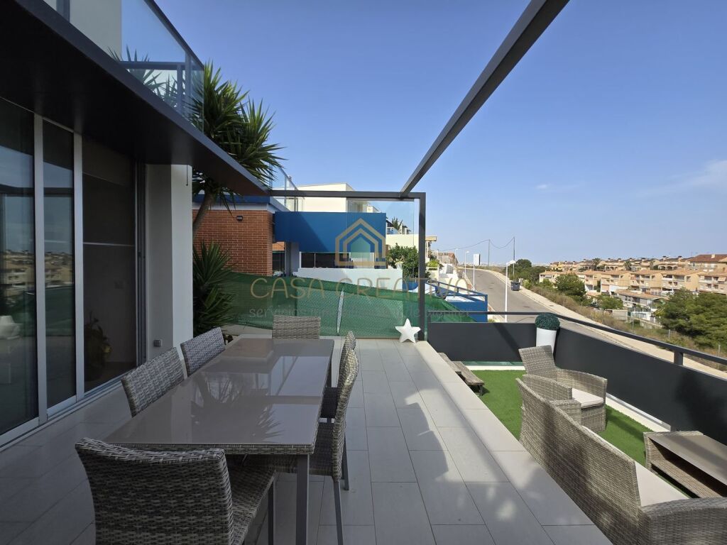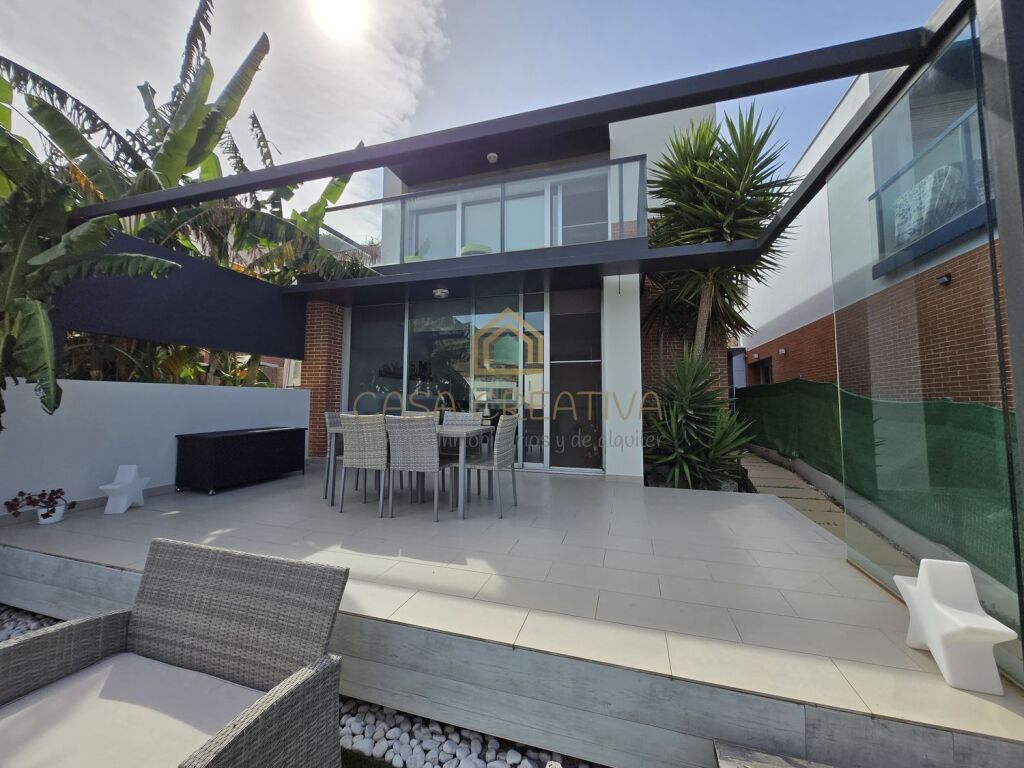 �CASA EN ALQUILER EN CUMBRES DE CALICANTO – TERRAZAS, LUZ Y CONFORT EN UN ENTORNO PRIVILEGIADOAmueblada • Aire acondicionado por conductos • 3 plantas con terrazas • Muy luminosaCasa Creativa Inmobiliaria te ofrece esta espectacular vivienda en alquiler, situada en la exclusiva urbanización Cumbres de Calicanto, rodeada de naturaleza y tranquilidad, a pocos minutos de Valencia.Una casa moderna, cómoda y equipada, ideal para quienes buscan espacio, luz y calidad de vida en un entorno residencial cuidado.✨ CARACTERÍSTICAS DESTACADAS:✔ 3 plantas con terrazas en cada nivel + terraza solárium gigante en la planta superior, ideal para disfrutar del aire libre o instalar una piscina hinchable (ya incluida)✔ 3 habitaciones, una de ellas actualmente habilitada como oficina o despacho✔ Salón amplio, muy luminoso y ventilado, ideal para el día a día o recibir visitas✔ Cocina equipada con todos los electrodomésticos✔ 1 aseo y 2 baños completos, funcionales y modernos✔ Amueblado y listo para entrar a vivir✔ Aire acondicionado frío/calor por conductos en toda la casa✔ Piscina desmontable incluida, perfecta para refrescarte en verano✔ Puerta acorazada y persianas automáticas, para mayor seguridad y comodidad✔ Armarios empotrados en dormitorios� LUZ, ESPACIO Y NATURALEZALa vivienda es totalmente exterior, muy luminosa durante todo el día, y con excelente ventilación natural. Perfecta para quienes valoran espacios abiertos, privacidad y vistas despejadas.� UBICACIÓN:Situada en la Urbanización Cumbres de Calicanto, una zona residencial con excelente calidad de vida, naturaleza alrededor y buena conexión por carretera con Valencia, Torrente y otras localidades cercanas. Ideal para familias, parejas o personas que teletrabajan y desean paz sin renunciar a la cercanía urbana.� ¡Una casa cómoda, moderna y lista para disfrutar al máximo!� Contáctanos para más información o para agendar tu visita. ¡Te encantará vivir aquí!