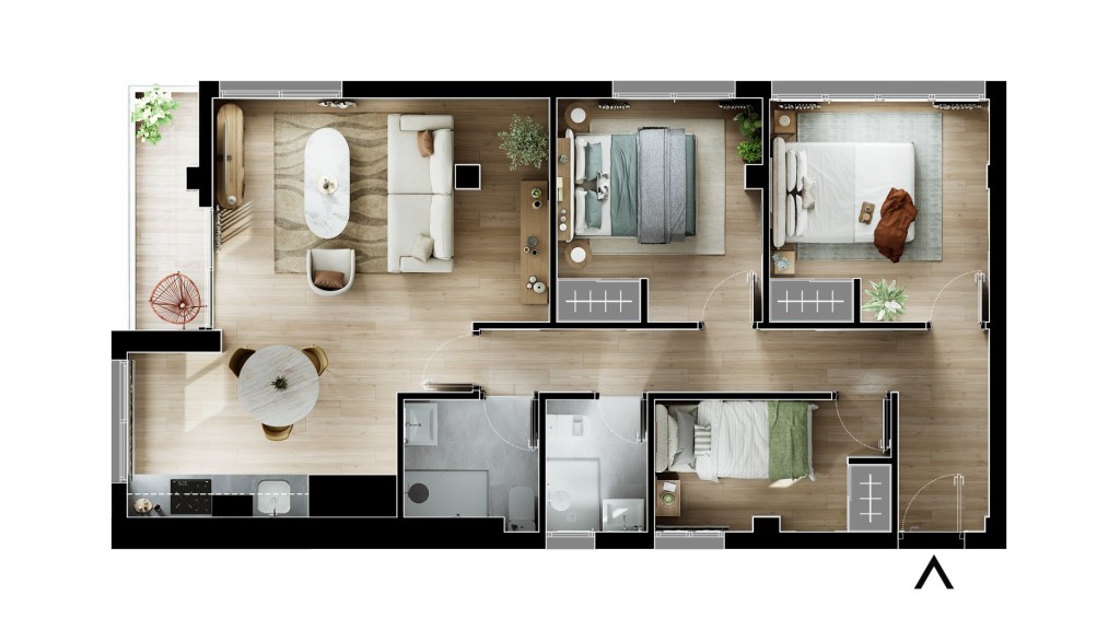 Cuenta con 3 dormitorios con armarios empotrados, 2 baños completos, aire acondicionado y una reforma integral realizada con materiales de primera calidad, ofreciendo un diseño moderno, funcional y listo para entrar a vivir.