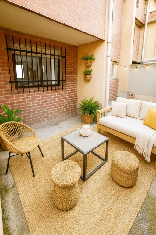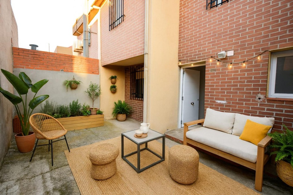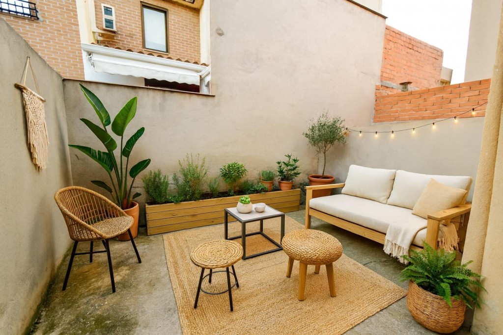 Al entrar a la propiedad nos encontramos con el patio delantero que es el más amplio de los dos con que cuenta la finca, esto permite tomar distancia de la calle y que se reduzca considerablemente el ruido del tráfico rodado y así disfrutar de una mejor concentración y descanso. Al patio posterior se accede desde la propia cocina, este es más compacto y acogedor.