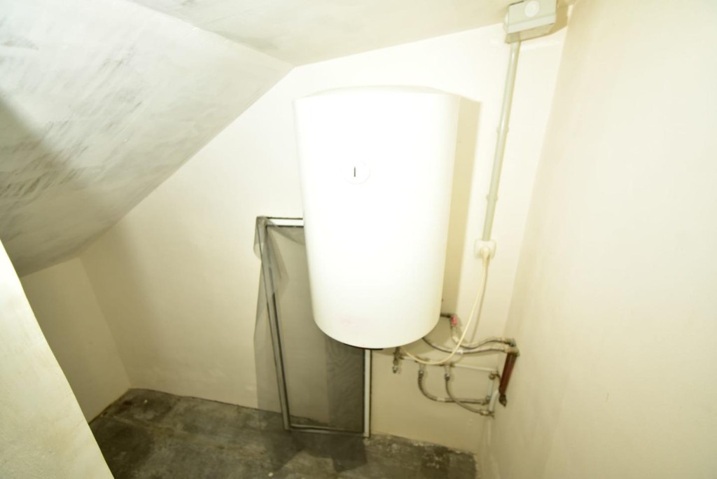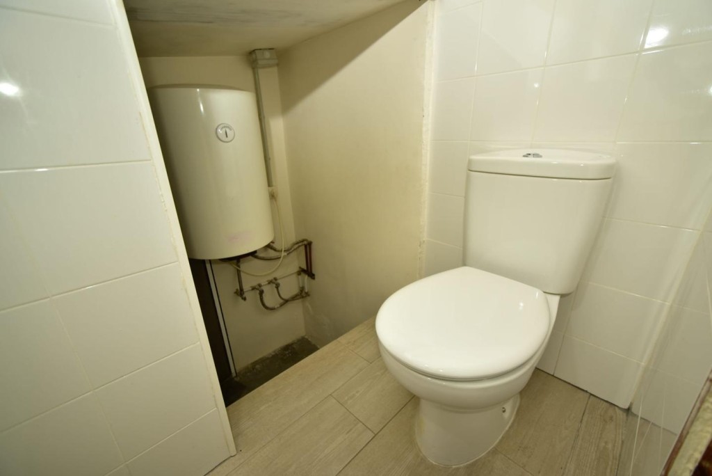 El salón amplio y alargado cuenta con 2 ventanas a cada uno de estos patios, lo que hace que esta parte de la vivienda permanezca siempre con luz. El aseo de la planta baja cuenta con un espacio de menor altura donde se encuentra el termo eléctrico de la casa, esto nos facilita el amueblado de la cocina donde normalmente suele ocupar un espacio que nos resta espacio útil, además este lugar del aseo nos puede servir como un extra de almacenaje.