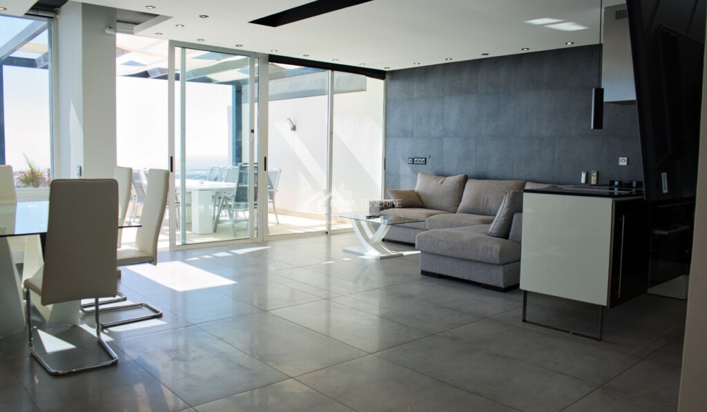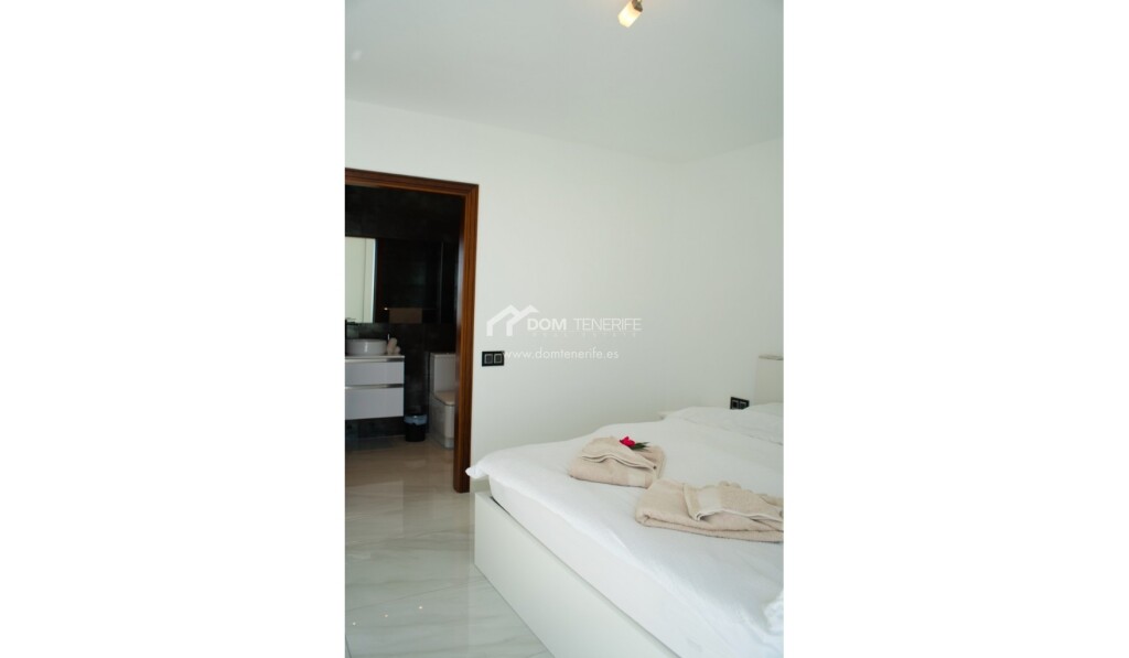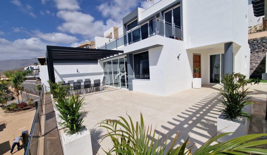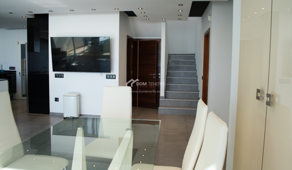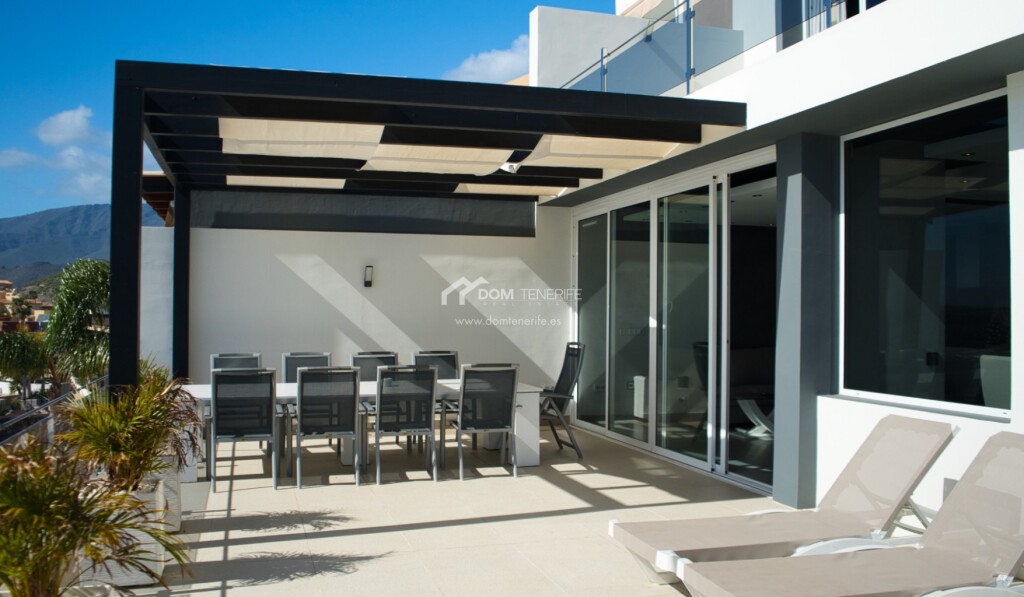 Se vende una villa recién reformada, situada en la prestigiosa zona de San Eugenio Alto, Costa Adeje en el complejo La Tagora. Esta propiedad tiene 127m2 de espacio habitable distribuido en dos niveles, renovado con buen gusto. Cuenta con tres dormitorios y tres baños completos, cada uno de ellos ensuite. Preciosa cocina, totalmente equipada con electrodomésticos modernos. El amplio salón-comedor tiene salida directa a la fantástica terraza con vistas al mar. El exterior es impresionante, con dos amplias terrazas de 114m2 y 180m2, que ofrecen vistas panorámicas del océano y la costa. La propiedad incluye dos plazas de aparcamiento cubiertas de 12m2 cada una, en el garaje comunitario. Además, como residente, tendrá acceso a la piscina comunitaria. Y para aquellos interesados en una oportunidad de inversión, esta propiedad está calificada para alquileres vacacionales, lo que le permitirá disfrutar de los beneficios de una casa de vacaciones. DOM Tenerife - ¡compre con seguridad!