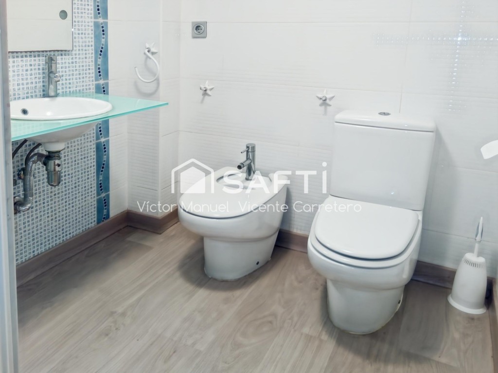 Gran vivienda con 2 terrazas y 137 metros construidos en Puerto de Sagunto, situada en la entreplanta de un edificio construido en 2.005, aunque cuenta con entrada independiente, por lo que no tiene gastos de comunidad. Accedemos a la vivienda por la terraza delantera cubierta, con capacidad para mesa con varias sillas y mobiliario auxiliar. La casa tiene 3 dormitorios con armarios empotrados y 2 baños completos, uno con bañera y otro con ducha. Toda la vivienda es muy amplia, pero especialmente el salón. Además dispone de una sala de ocio o despacho muy amplia . La cocina es moderna y se encuentra en estado impecable, como el resto de la casa. Tiene además otra terraza interior de 9 metros, a la que accedemos desde las habitaciones. La vivienda dispone de aire acondicionado por conductos, carpintería exterior de aluminio con doble acristalamiento y puertas de paso macizas de haya. Los suelos son de tarima flotante. El piso se alquila amueblado y con electrodomésticos.