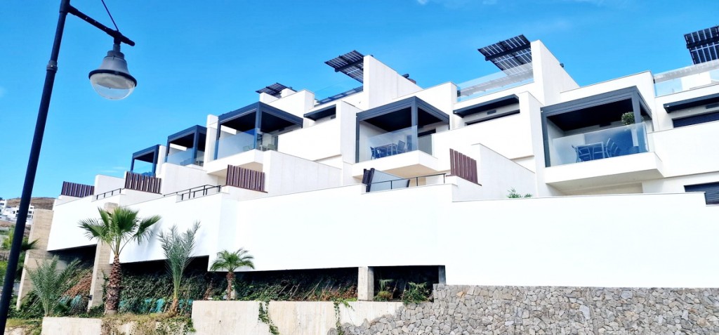 En una pequeña urbanización privada en la zona de Málaga Oriental, , a 400m de la playa, entre las poblaciones de Nerja y Torrox Costa, en una ubicación privilegiada, equidistante de ambas 3km, subiendo hacia el interior, se encuentra esta pequeña urbanización de 37 propiedades construida en 2024 con los más modernos estándares europeos, de sostenibilidad y servicios, placas solares, piscina climatizada, spa, zonas comunes, gimnasio , cafetería, etc. Donde se ubica esta bonita y practica casa adosada de 156m2