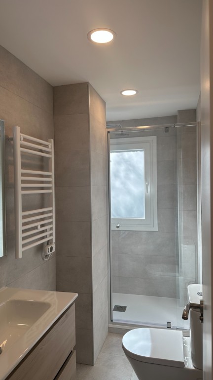 Se ha llevado a cabo la reforma con excelentes calidades: paredes lisas, pavimento porcelánico en baño, cerramientos con cumplimiento de máxima eficiencia energética (climalit con doble acristalamiento) y electricidad y fontanería completamente nuevos.