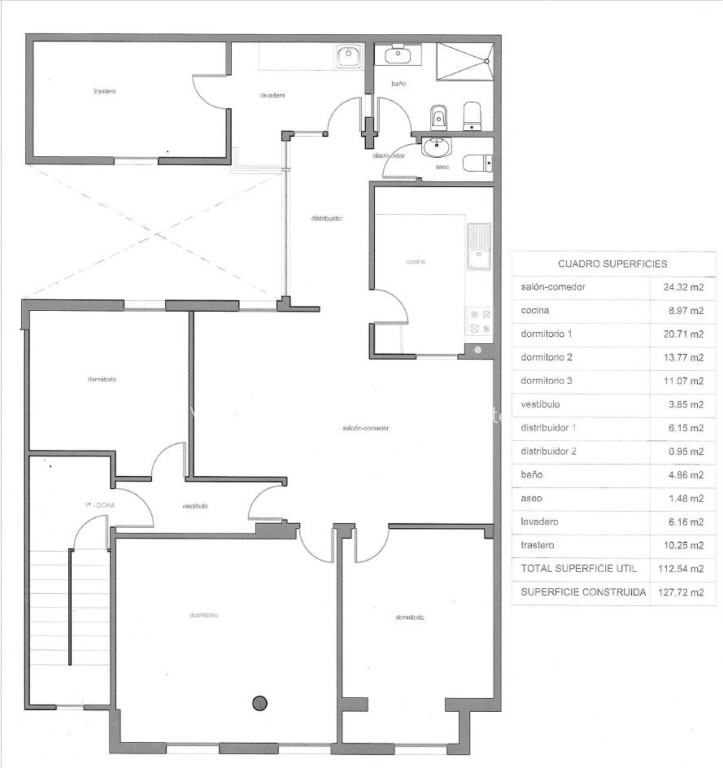 La propiedad cuenta con 3 dormitorios muy amplios, 1 baño, 1 aseo, salón comedor, cocina independiente, otra cocina exterior con lavadero y un trastero en planta de 10m2.