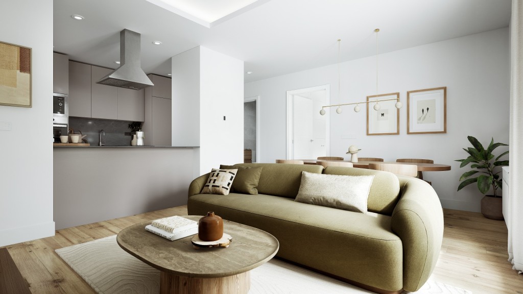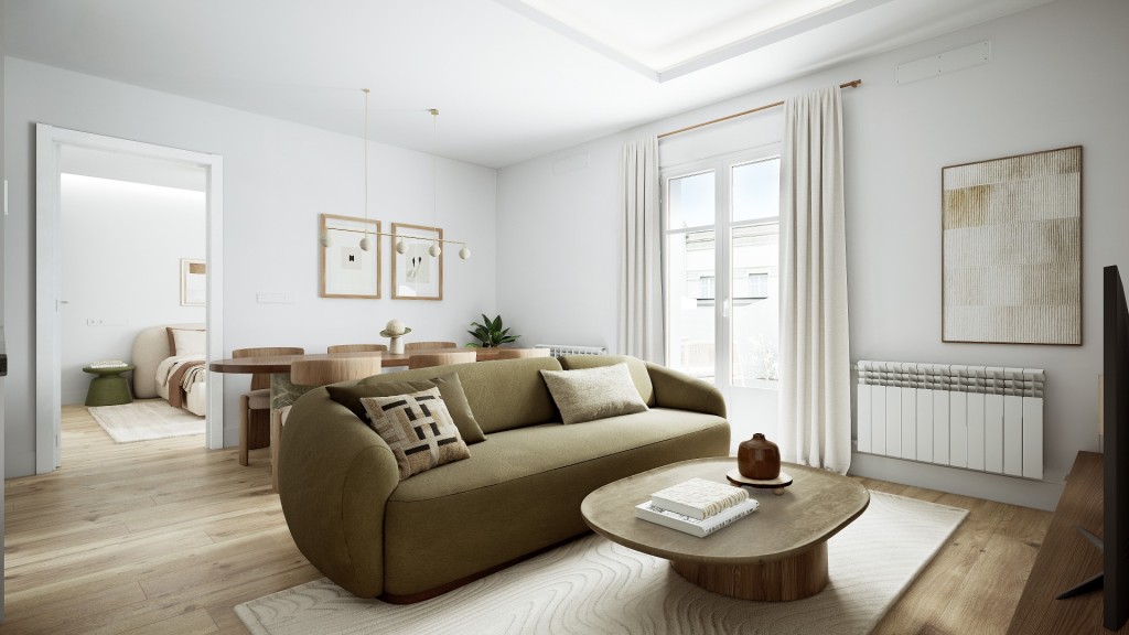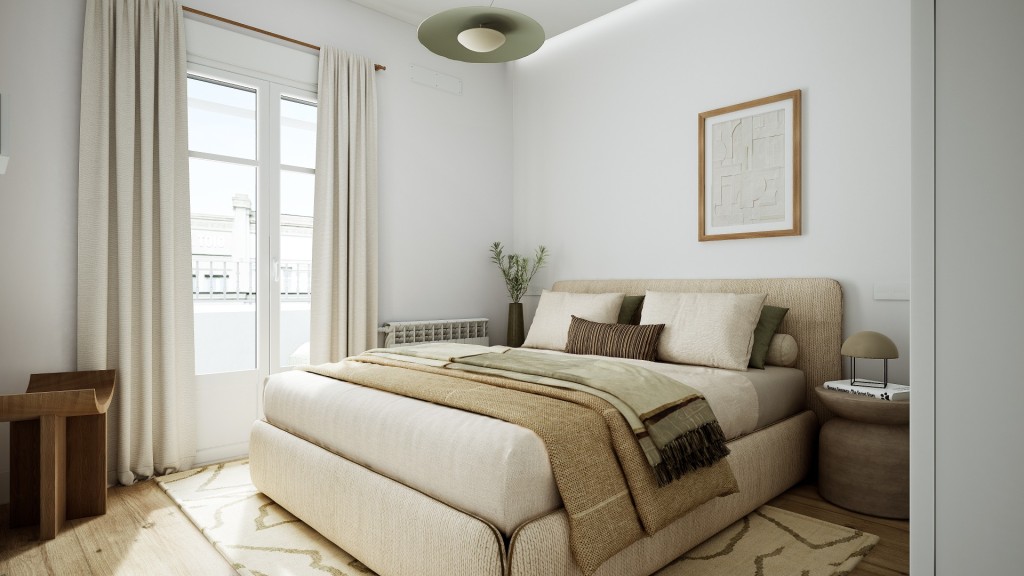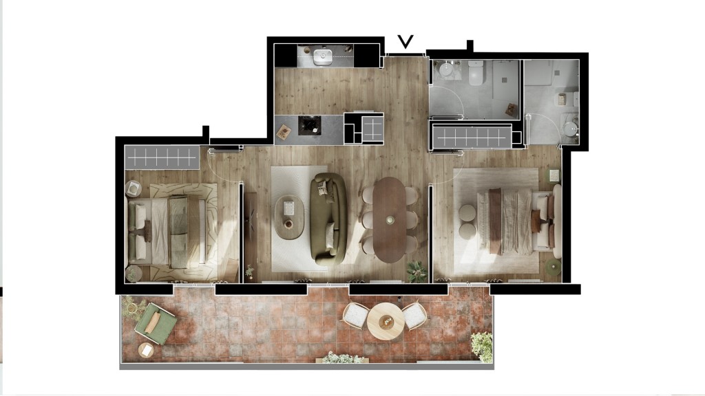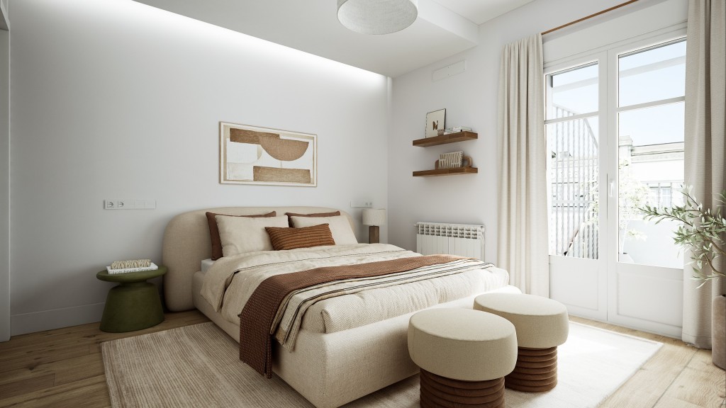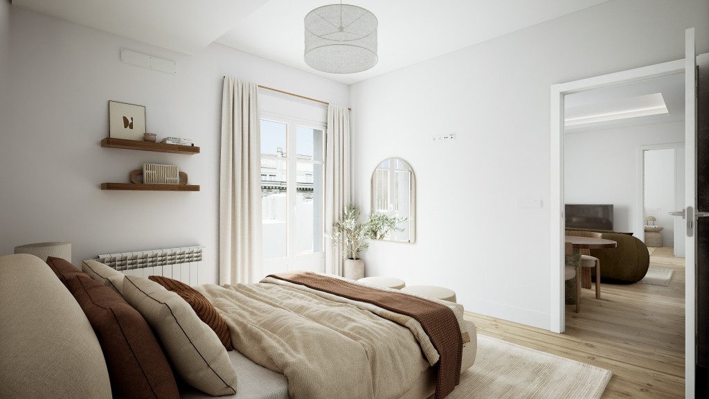 Este exclusivo ático cuenta con un salón comedor con acceso directo a la terraza, cocina abierta totalmente equipada y amueblada, 2 dormitorios y 2 baños. Todas las estancias cuentan con una gran amplitud y, además, una importante entrada de luz natural por sus ventanas debido a la altura de la vivienda (4º planta aunque se ve como un 6º desde el exterior) y su orientación sur.