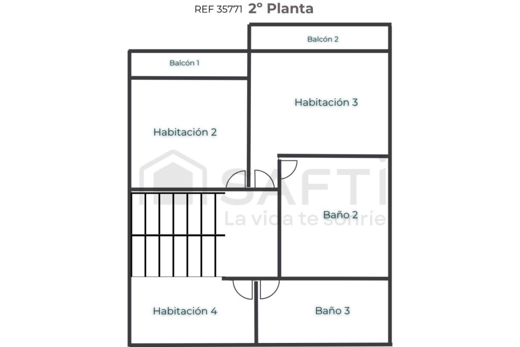 Primera planta: Tres habitaciones, una de ellas con baño en suite, y otro baño completo para mayor comodidad.