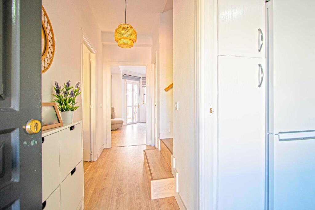 Bonita vivienda adosada en Mairena del Aljarafe!!!Casa muy cómoda y de estilo muy actual.Dispone de 112.32 m2 construidos distribuidos en dos plantas.Un amplio patio delantero nos abre paso, en él hay una zona techada ideal para aparcar su vehículo.Al entrar tenemos una bonita cocina independiente, de bonito diseño, con muebles de madera lacada en blanco, muy cómoda y práctica.El salón es independiente, con chimenea, muy acogedor y confortable, con acceso a patio trasero perfecto para disfrutar de una comida al aire libre con amplio trastero.En esta misma planta tenemos un dormitorio perfecto como despacho y un bonito aseo.La primera planta se distribuye en tres dormitorios exteriores con armarios empotrados, el principal con estupendo vestidor y baño integrado con placa de ducha. Un segundo baño con bañera da servicio a los otros dormitorios.Las ventanas son de aluminio lacado en blanco, las puertas de madera lacada en blanco y el suelo de tarima. Dispone de aire acondicionado mediante splits independientes y gas butano.Exterior y muy luminosa, muy bien situada, junto comercios, colegios, zonas infantiles......Solicite visita hoy mismo!!!Informamos a nuestros clientes compradores que el precio de venta no incluye lo siguiente: Honorarios de la agencia inmobiliaria, Impuestos (I.T.P., I.V.A. o A.J.D., en su caso) ni otros gastos de la compraventa (gastos de Registro de la Propiedad, Notaría, Gestoría ni de posible Financiación). Documento F.I.S. a disposición del consumidor según Decreto 218/2005 Junta de Andalucía.