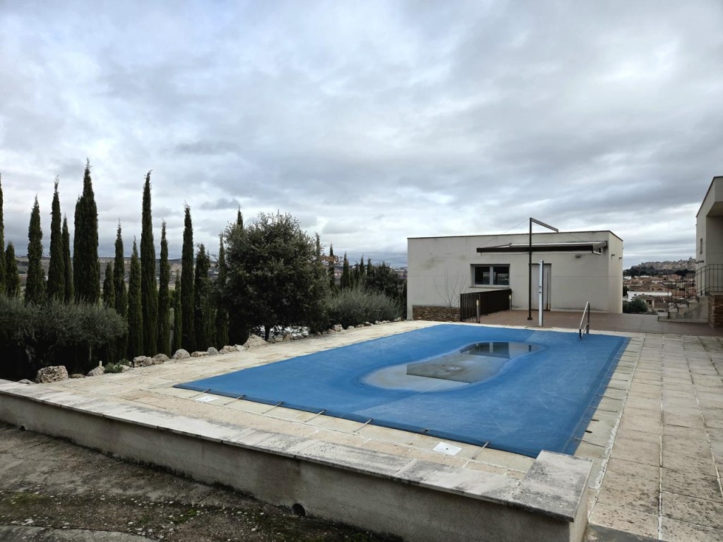 La vivienda principal, de arquitectura contemporánea y líneas sobrias, ofrece estancias amplias y luminosas pensadas para el máximo confort. Dispone de cuatro dormitorios, dos de ellos en suite, y cuatro baños completos. El corazón de la casa lo ocupa un magnífico salón de 50 m² que se abre a una amplia terraza con vistas despejadas de Toledo, creando un espacio ideal para disfrutar del entorno y la tranquilidad. La cocina office, espaciosa y funcional, está diseñada para el día a día y para reuniones familiares, integrándose perfectamente en el estilo de la vivienda.