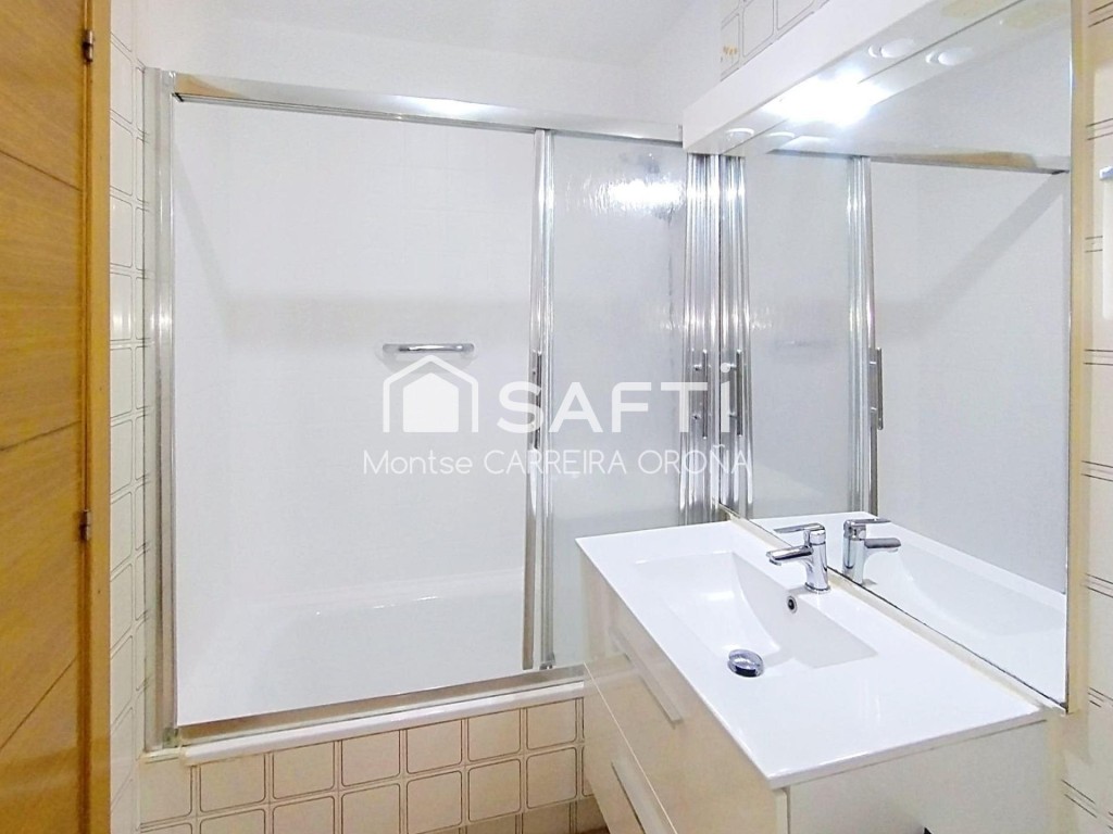 La vivienda dispone de tres dormitorios de gran tamaño y dos baños, uno de ellos en suite en la habitación principal. El salón, gracias a su altura, disfruta de excelente luz natural durante todo el día. La cocina está completamente equipada e incluye un tendedero o zona de lavandería independiente con luz natural, un espacio muy funcional. Además, el piso se vende amueblado, listo para entrar a vivir o alquilar casi desde el primer día.