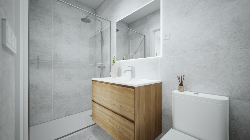 La vivienda cuenta con 85 m² construidos y una doble orientación Sur y Norte, lo que garantiza una excelente luminosidad y ventilación cruzada. Se distribuye en dos habitaciones dobles, ambas con armarios empotrados, siendo una de ellas en suite. Dispone de dos baños completos y de un salón con cocina integrada, totalmente equipada, que ofrece un espacio moderno y funcional.