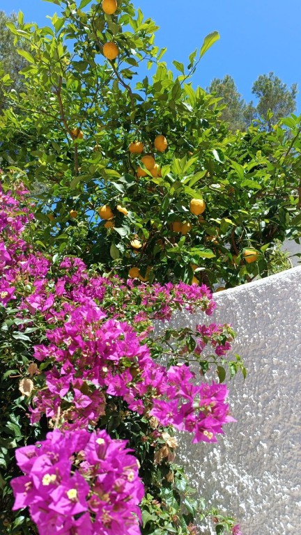 Se sitúa sobre una amplia parcela urbana de 980 m² con jardín, árboles frutales y pinos, creando un entorno ideal para el descanso. Dispone de piscina privada para disfrutar del buen clima.