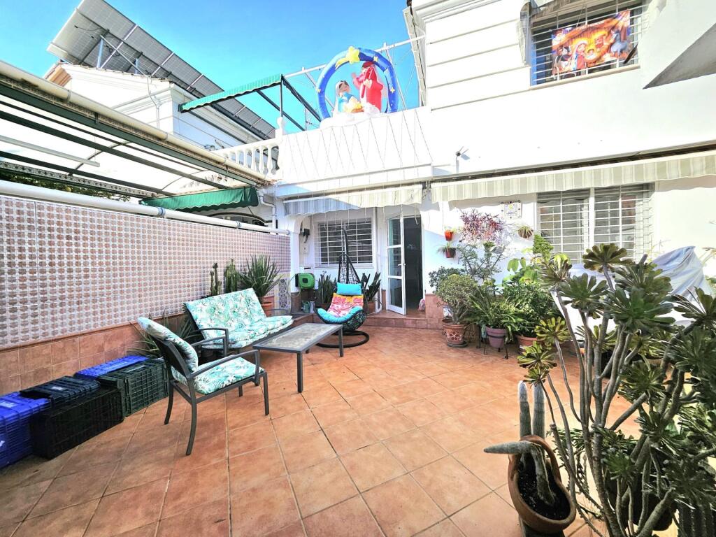 Preciosa vivienda REFORMADA en venta de 105 m2 construidos, MÁS buhardilla y sótano de 61 m2, ubicada en c/ Autogiro, Sevilla Este, cerca de todo tipo de servicios a su disposición.La vivienda consta de las siguientes características:Planta baja:- Hall de entrada con cómoda escalera de bajada al sótano.- Espacioso y agradable salón-comedor con split de aire acondicionado frío/calor, estufa de leña, mueble cajonero para TV... Tiene una pequeña alacena en el hueco de la escalera.- Bonita cocina completamente amueblada y equipada con electrodomésticos (placa de inducción, frigorífico con doble puerta, lavadora, horno, lavavajillas, microondas, termo de gas butano...) con doble puerta acristalada en aluminio negro.- Un baño completo con bañera de hidromasajes.- Patio alicatado con trastero, toma de enchufe exterior y toldos automáticos.- Sótano de 61 m2 con techos altos y ventilación mediante ventanas. Tiene vestidor.Planta alta:- Un baño completo.- Tres dormitorios.- Terraza con toldo en dormitorio principal.- Acceso a buhardilla mediante escalera escamoteable.Además, la vivienda dispone de placas solares con batería, puertas nuevas, pasamanos y herraje de la escalera nuevos, dos aires acondicionados frío/calor, tubo solar en hueco de escalera, pared medianera insonorizada, ventanas de climalit (excepto en el hall), cuadro eléctrico nuevo...Incluye la titularidad de socio al Club Social, el cual cuenta con dos piscinas, bar, pistas de fútbol, paddle... Cuota: 36€/mes.Esta vivienda te enamorará por su espacio y sus posibilidades.Llámanos sin compromiso para más información. Estaremos encantados de atenderle.Informamos a nuestros clientes compradores que el precio de venta no incluye lo siguiente: Honorarios de la agencia inmobiliaria, Impuestos (I.T.P., I.V.A. o A.J.D., en su caso) ni otros gastos de la compraventa (gastos de Registro de la Propiedad, Notaría, Gestoría ni de posible Financiación). Documento F.I.S. a disposición del consumidor según Decreto 218/2005 Junta de Andalucía.