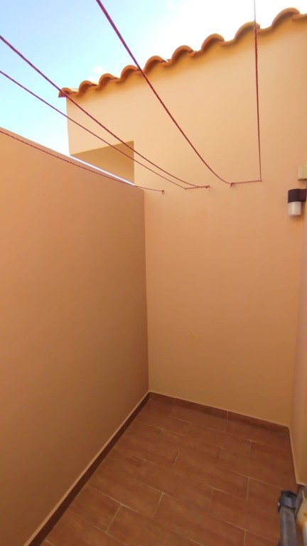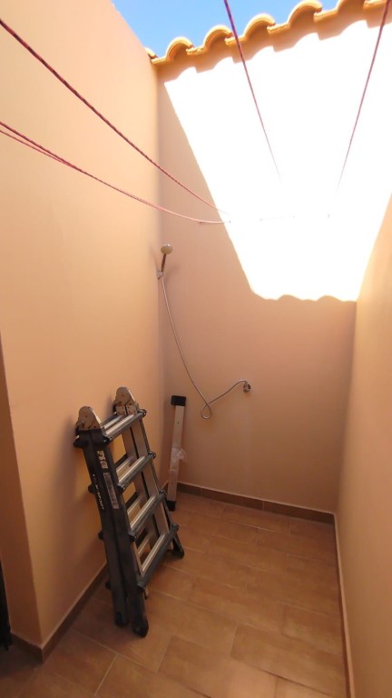 Frente a la puerta ventana, un distribuidor elegante y funcional organiza los espacios: desde aquí se accede al primer baño, actualmente utilizado también como zona de lavandería, con salida a un patio cerrado ideal como área de servicio, y a una puerta que conduce al pasillo de la zona de descanso, conectando de manera funcional los espacios comunes con los dormitorios.