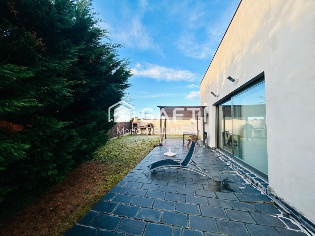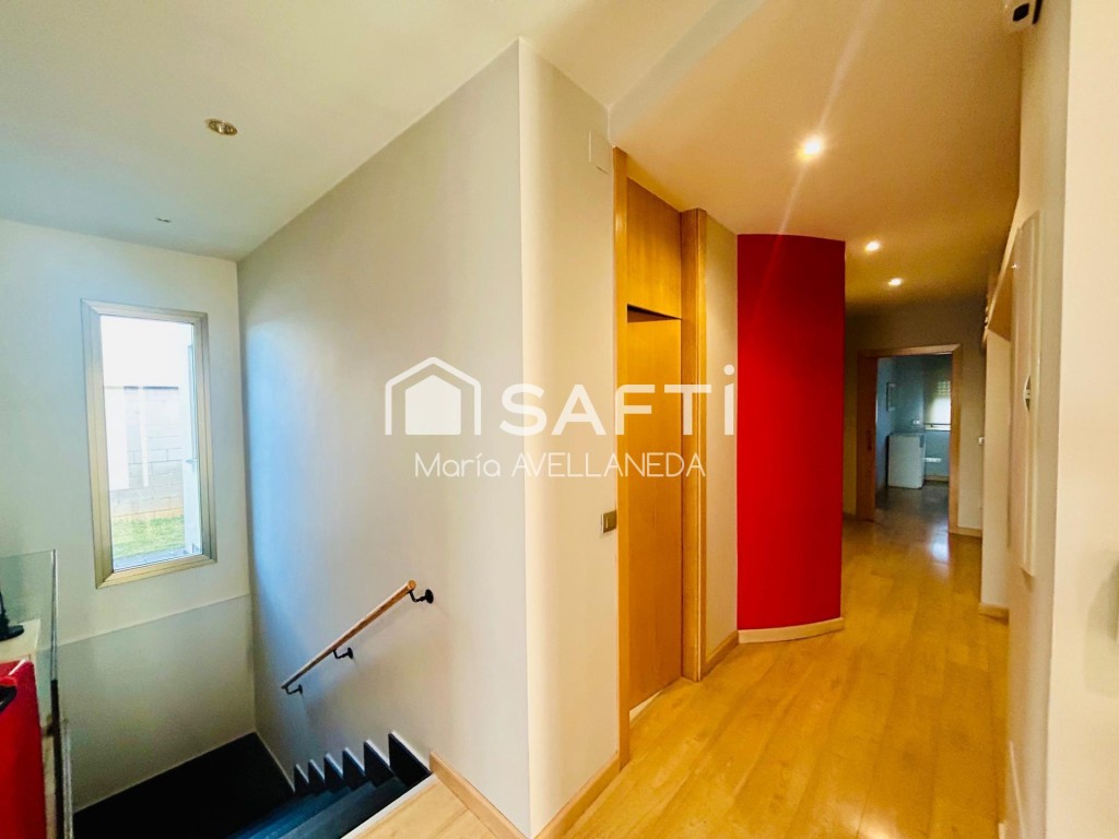 Esta impecable vivienda construida en el año 2008 consta de planta baja que comprende toda la parte destinada a vivienda y una planta sótano con garaje para 5 coches, salón de juegos, etc. Cada planta consta de 200 metros construidos. En la planta superior, el recibidor da paso a una estancia abierta que comunica la cocina open concept y el salón comedor con los espacios bien diferenciados se abre al jardín con porche y un cenador con vistas panorámicas a la ciudad. Hacia el lado opuesto, el salón nos conduce a los dormitorios, uno de ellos en suite con baño completo y vestidor realizado a medida. Los baños tienen ducha dos de ellos y uno bañera. Sala de lavandería. La casa está construida en primeras calidades demostrables y de alta eficiencia energética. La calefacción funciona por suelo radiante con caldera de gasóleo. Suelo de tarima flotante y carpintería interior de madera de arce. Sistema de aspiración centralizada y persianas motorizadas. Diseño minimalista, en línea con el blanco y negro, con toques de madera natural que aportan calidez.