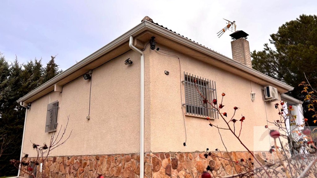 Las paredes gruesas, sin gotelé, proporcionan un excelente aislamiento tanto térmico como acústico, manteniendo una temperatura agradable durante todo el año. La calefacción se realiza mediante aire acondicionado y chimenea de leña, combinando eficiencia y calidez.