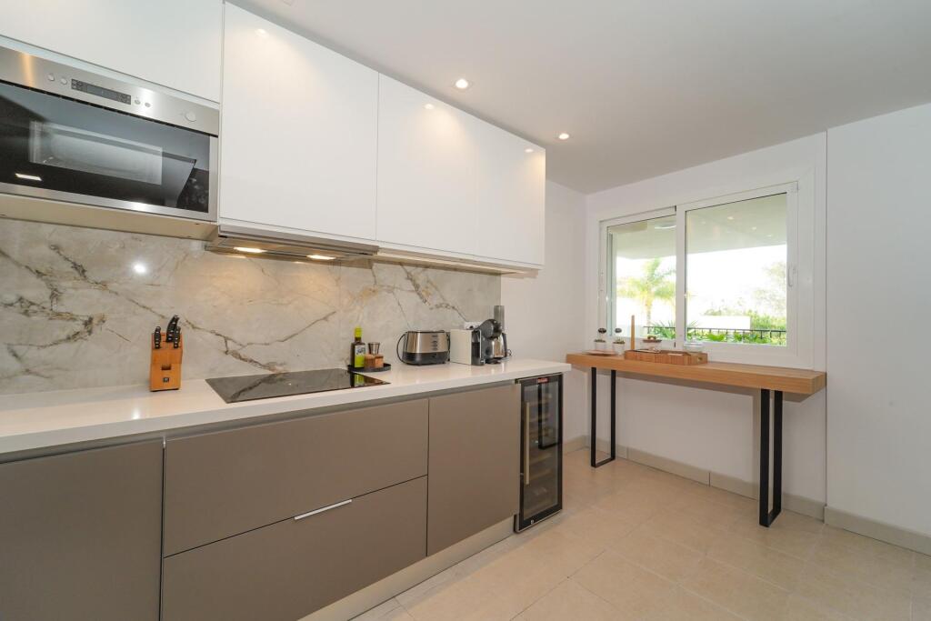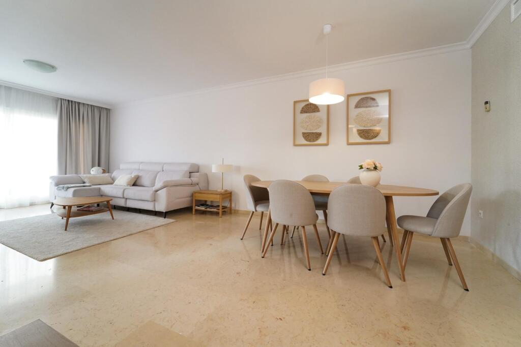 Descubra una forma de vivir Marbella desde la calma, el confort y la calidad, en este magnífico apartamento de 172 m2 , situado en la prestigiosa y consolidada zona de Elviria – Santa María, uno de los enclaves residenciales más valorados de la Costa del Sol.La vivienda, recientemente renovada y con muy poco uso, destaca por su amplitud, luminosidad y cuidada distribución. Ofrece un gran salón lleno de luz natural, perfecto para el día a día y para recibir invitados, tres dormitorios amplios y acogedores con armarios empotrados y dos baños modernos, diseñados para el máximo confort.La cocina, totalmente equipada, combina funcionalidad y estilo, ideal tanto para estancias largas como para uso vacacional. El apartamento dispone además de dos agradables terrazas privadas, espacios ideales para relajarse, leer o disfrutar del clima mediterráneo con total privacidad.Ubicado en una urbanización cuidada y de alto nivel, la propiedad se rodea de exuberantes jardines y hasta seis piscinas, creando un auténtico oasis de tranquilidad. Todo ello a escasos minutos de playas de arena fina, campos de golf de primer nivel, zonas comerciales, restaurantes y con excelentes conexiones con el centro de Marbella.Incluye:Plaza de garaje subterráneaTrasteroEdificio con ascensorVivienda parcialmente adaptada para personas con movilidad reducidaOrientación sur y este, garantizando luz durante gran parte del díaUna propiedad ideal tanto como residencia habitual, segunda vivienda de calidad o inversión segura en una de las zonas con mayor demanda y estabilidad de Marbella.Una casa lista para disfrutar, en un entorno privilegiado donde el tiempo se vive de otra manera.