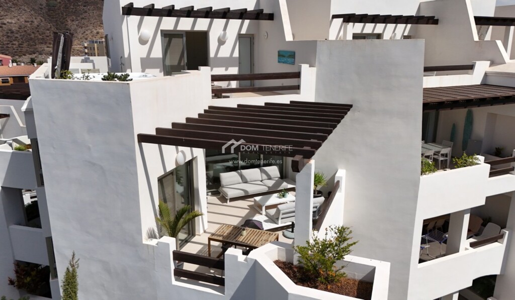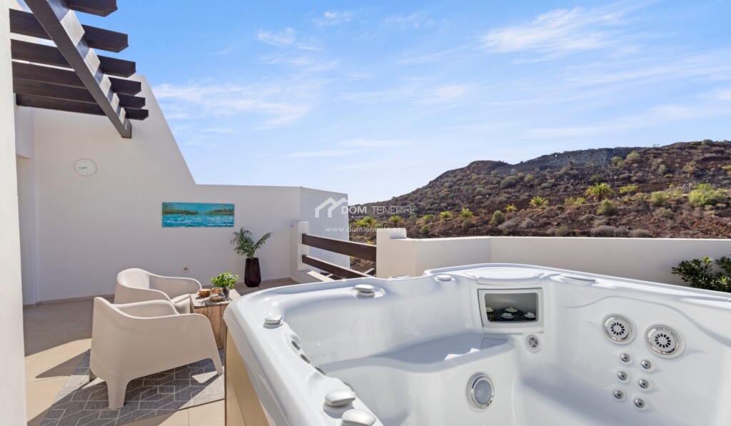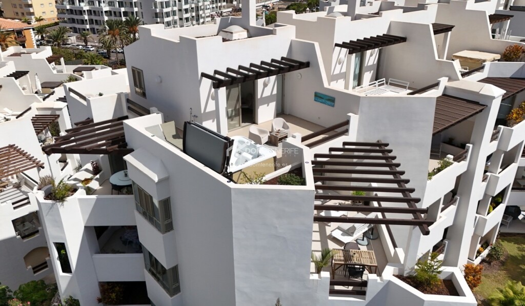 Este excepcional ático en esquina en venta en Jardines de Los Menceyes, situado junto a la reserva natural protegida de La Rasca, en Palm Mar, representa una oportunidad única para los compradores de lujo que buscan privacidad, vistas y un estilo de vida refinado en el sur de Tenerife. La propiedad goza de una ubicación privilegiada que garantiza vistas despejadas, tranquilidad absoluta y un alto nivel de privacidad, realzado por su diseño en esquina. En la planta principal, el ático cuenta con dos amplias terrazas que inundan el interior de luz natural y proporcionan espacios exteriores ideales para la vida al aire libre, mientras que una escalera interior conduce a un solárium privado en la azotea con jacuzzi, perfecto para relajarse en completa intimidad. La distribución interior ofrece tres elegantes dormitorios con baño y un aseo adicional para invitados, combinando comodidad y funcionalidad con un ambiente residencial de alta gama. Una de las características más destacadas es la inclusión de una plaza de aparcamiento privada de 23 m² y un trastero de 15 m², ambos incluidos en el precio, lo que añade un valor y una comodidad significativos. El prestigioso complejo Jardines de Los Menceyes es conocido por sus impecables jardines, sus múltiples piscinas comunitarias y su gimnasio totalmente equipado con máquinas Technogym, lo que lo hace muy atractivo para una clientela internacional exigente. Con un IBI anual de 500 € y unos gastos de comunidad de 335 € al mes, este ático de lujo es ideal como residencia principal, segunda vivienda o inversión de alto standing en una de las zonas residenciales más exclusivas de Tenerife. DOM Tenerife Real Estate: ¡Compre con seguridad!