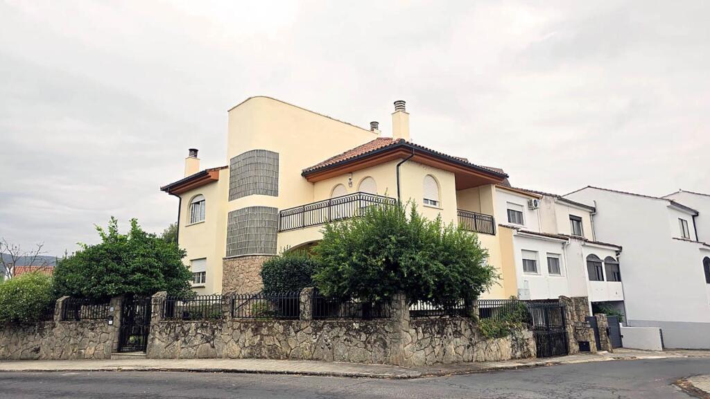 EN VENTA CHALET PAREADO DE CUATRO PLANTAS EN EL CENTRO URBANO DE PLASENCIA, CÁCERESYES HOME | Servicios Inmobiliarios, comercializa la venta de este chalet pareado en Plasencia, Cáceres. Ubicado en zona residencial y a tan solo diez minutos andando del Ayuntamiento de Plasencia y muy cercano al Acueducto en un agradable paseo. Zona dotada con amplia oferta comercial, gastronómica y variedad de servicios cercanos. Con fácil acceso en transporte público y vehículo privado.Este chalet edificado en el año 1993 sobre una parcela en esquina de 275 m2 cuenta con una superficie construida de 422 m2 distribuidos en cuatro plantas:• En Planta Principal:- Porche y Hall de entrada,- Amplio y luminoso salón-comedor en dos ambientes con grandes ventanales que ofrecen el acceso a la Terraza y al Jardín.- Cocina independiente totalmente amueblada con Tendedero.- Habitación con Baño en Suite- Un aseo de cortesía.• Primera Planta:- Amplio dormitorio principal con grandes ventanas, dotado con armarios empotrados y cuarto de baño en suite.- 3 cómodas habitaciones, dos tienen terrazas.- Un baño completo adicional.• Segunda Planta:- Buhardilla amplia y completamente diáfana y con excelente entrada de luz y Terraza con vistas a toda la ciudad.• Planta Semisótano:- Amplio garaje para 4 coches con Doble puerta - Automática y Manual.- Cuarto de Máquinas, con Depósito de Gasoil de 400 Litros y Caldera con sólo 2 años de instalada.- Salón recreativo, con Barra y Chimenea de leña.- Bodega.- Aseo de Cortesía.El interior del chalet cuenta con altas calidades de construcción y diseño, Librería en Nogal y escalera en Cerezo y madera fina de Ukola.Posee sistema de climatización por Gasoil en todos los espacios, ventanas tipo Climalit y Pre-Instalación de Aire acondicionado, Toldos motorizados y Riego automático en Jardín con árboles frutales.Esta amplia vivienda lista para ingresar a vivir, ofrece diversas opciones de adaptación a las necesidades de los nuevos propietarios. Una excelente oportunidad para aquellos que buscan un lugar tranquilo y cómodo para vivir, o como inversión segura y atractiva a través de su arrendamiento, en una zona de alta demanda.¡No esperes más y contáctanos para obtener más información!Estamos a su disposición para cualquier consulta o visita que desee realizar.Honorarios Compartidos entre el Comprador y el Vendedor... los más Bajos del Mercado.Descubra todo nuestro producto visitando nuestra web YESHOME.ES