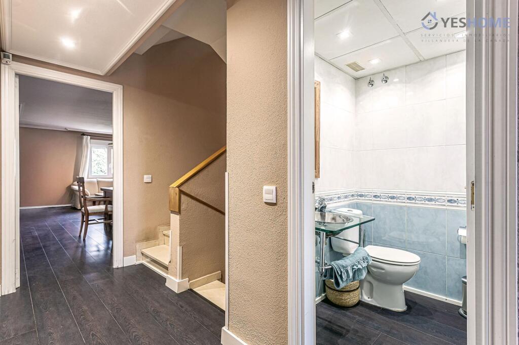 EN VENTA CHALET PAREADO DE CUATRO PLANTAS Y PISCINA PRIVADA EN EL CENTRO URBANO DE VILLANUEVA DE LA CAÑADAYES HOME | Servicios Inmobiliarios, comercializa la venta de este chalet pareado en Villanueva de la Cañada.Ubicado en zona residencial y a tan solo ocho minutos andando del Ayuntamiento de Villanueva de la Cañada. Zona dotada con amplia oferta comercial, gastronómica y variedad de servicios cercanos. Con fácil acceso en transporte público y vehículo privado.Este chalet edificado en el año 2002 sobre una parcela de 419 m2 cuenta con una superficie construida de 429 m2 distribuidos en cuatro plantas:• En planta principal:- Hall de entrada,- Amplio y luminoso salón-comedor en dos ambientes con grandes ventanales que ofrecen el acceso al porche, al Jardín y a la piscina privada.- Cocina independiente totalmente amueblada.- Dos chimeneas.- Una habitación.- Un aseo de cortesía y un aseo vestidor en el área de la piscina.• Primera planta:- Amplio dormitorio principal con grandes ventanas, dotado con dos armarios empotrados -3m c/u- y cuarto de baño en suite.- 4 cómodas habitaciones.- Un baño completo adicional.• Segunda planta:- Buhardilla amplia y completamente diáfana y con excelente entrada de luz.• Planta Semisótano:- Posee una habitación que bien puede usarse como cuarto de lavandería y adicionalmente amplio garaje para 2 o 3 coches.El interior del chalet cuenta con altas calidades de construcción y diseño.Posee sistema de climatización por Geotermia en todos los espacios, lo que permite un importante ahorro en los gastos de electricidad, ventanas tipo Climalit y Aire acondicionado. Piscina Clorada de gran tamaño y de reciente rehabilitación con aseo-vestidor y jardines.Esta amplia vivienda lista para ingresar a vivir, ofrece diversas opciones de adaptación a las necesidades de los nuevos propietarios. Una excelente oportunidad para aquellos que buscan un lugar tranquilo y cómodo para vivir, o como inversión segura y atractiva a través de su arrendamiento a estudiantes, en una zona de alta demanda.¡No esperes más y contáctanos para obtener más información!Estamos a su disposición para cualquier consulta o visita que desee realizar.Honorarios Compartidos entre el Comprador y el Vendedor... los más Bajos del Mercado.