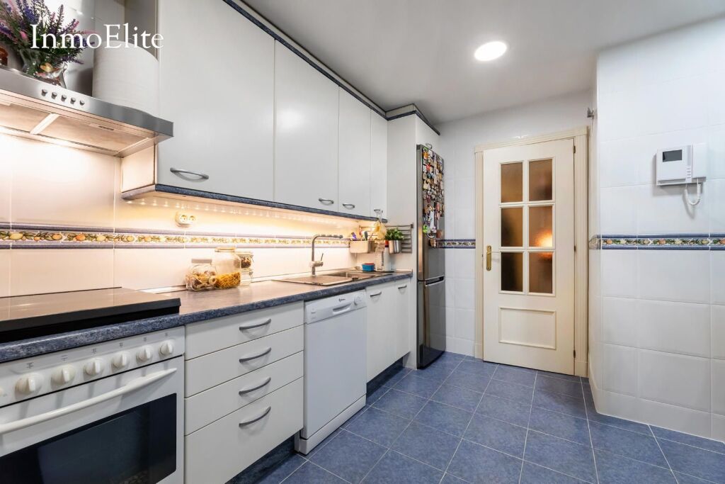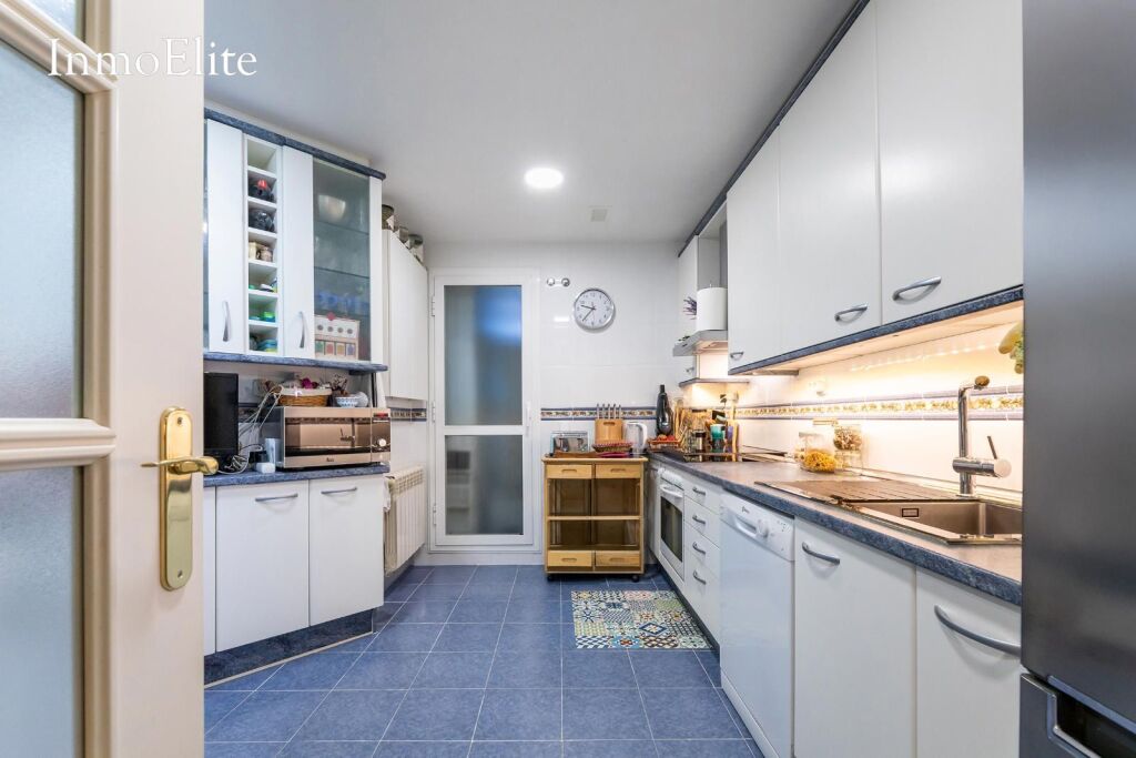Al entrar nos encontramos con un amplio recibidor que nos lleva a un salón- comedor muy luminoso con vistas a la sierra de Madrid. Junto al salón se ubica una cocina totalmente equipada con zona de office y amplio tendedero con lavadero.