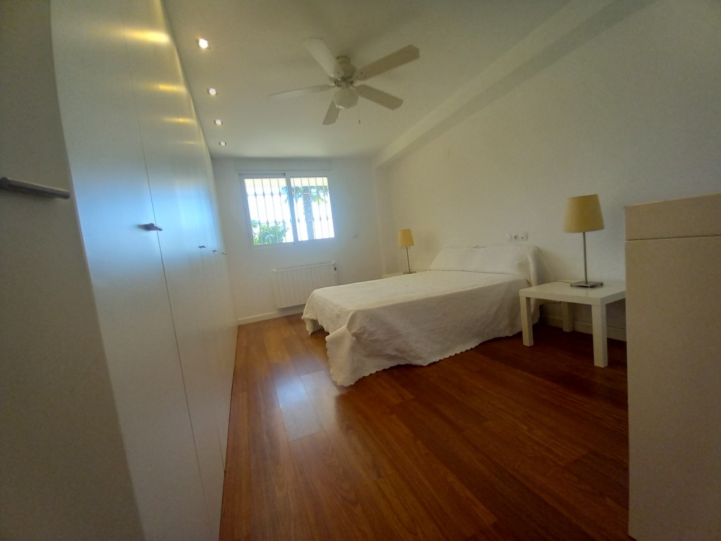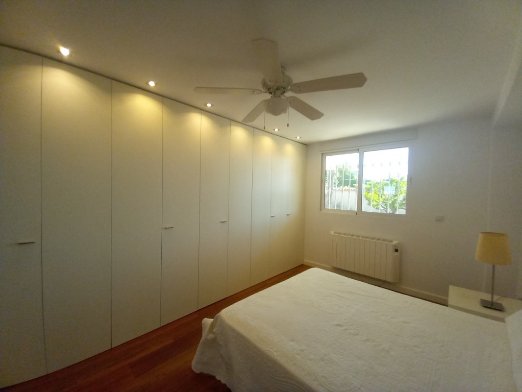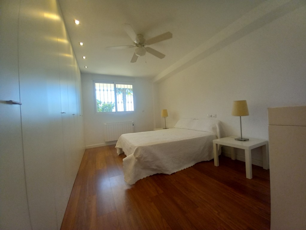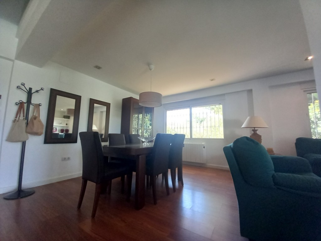 En la planta baja se encuentra un salón comedor que destaca por su chimenea y techos altos, creando un ambiente acogedor y luminoso gracias a los ventanales que permiten la entrada de luz natural en todas las orientaciones. Desde aquí, se accede a dos piscinas, una para adultos y otra infantil, ideales para refrescarse en los días calurosos. La cocina abierta, totalmente equipada, cuenta con una barra americana y una gran mesa de billar en el comedor, convirtiendo cada comida en una celebración también encuentra un baño completo de uso compartido, la habitación principal con una gran armariada y baño en suite con ducha.