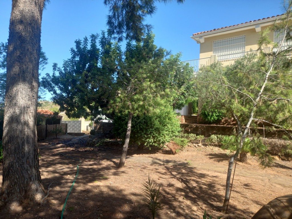 La propiedad cuenta con calefacción eléctrica, ventiladores de techo en las habitaciones y suelos de parquet y mármol que aportan elegancia a cada rincón. El jardín es un verdadero oasis con zona infantil, bancos, mesas y un pozo para la recogida de agua de lluvia. Además, hay una zona para mascotas vallada, árboles frutales y una bonita pinada que añade un toque especial al entorno.