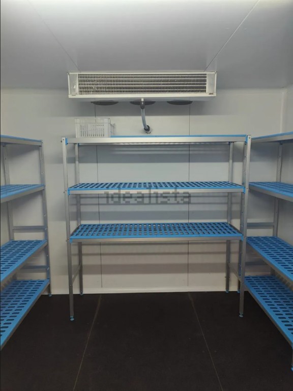 Cuenta también con almacén seco con estanterías, oficina acristalada de 36 m² para hasta 8 puestos, despacho o sala de reuniones de 18 m², dos baños con ducha adaptados, sala de máquinas, dos plazas de parking exterior con acceso para traspalé y posibilidad de terraza exterior.