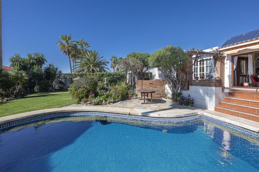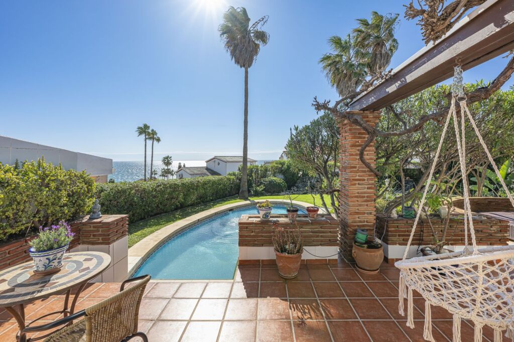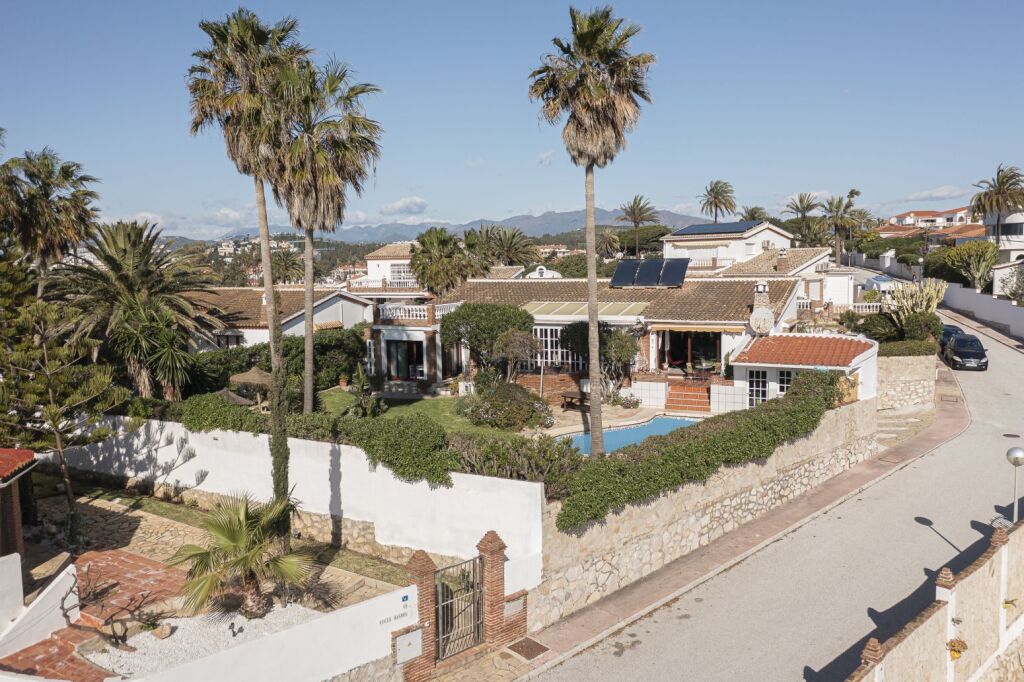 Chalet independiente con vistas al mar en El Faro de Calurra – a 250 metros de la playaSituado en una de las zonas residenciales más prestigiosas de Mijas, este chalet independiente ofrece una combinación única de ubicación, privacidad y vistas al mar. Está ubicado en una calle sin salida, lo que garantiza tranquilidad absoluta, y a solo 250 metros de la playa, con fácil acceso a todos los servicios de la Costa del Sol.Desde su terraza superior, la vivienda ofrece vistas panorámicas al Mediterráneo, al Faro de Mijas y a un entorno natural consolidado.DistribuciónLa vivienda cuenta con:4 dormitorios:1 dormitorio doble con baño en suite3 dormitorios individuales2 baños completosSalón principal con chimenea y salida a terraza orientada al surCocina abierta integrada en el salón, cómoda y funcionalVentanas ClimaLit con apertura oscilobatientePersianas automáticas con domóticaExteriores y equipamientoPiscina privada en zona soleada del jardínJardín bien mantenido con sistema de riego automáticoDos garajes cerrados con portón automáticoTrastero en planta altaAdemás, dispone de una planta sótano de 90 m2, actualmente sin habilitar, pero con posibilidad de ejecutar una obra para ampliar la superficie útil de la vivienda. Un espacio perfecto para quienes buscan crear una sala de ocio, gimnasio, apartamento de invitados o ampliar el espacio interior según sus necesidades.Potencial y valorLa vivienda se encuentra en buen estado general, aunque necesita algunas reformas. Su ubicación, distribución, orientación y posibilidad de ampliación la convierten en una propiedad única con alto potencial de revalorización.📍 El Faro de La Burra – Mijas CostaZona consolidada, tranquila y con excelente conexión con Fuengirola, La Cala y Málaga.📞 Contáctanos para más información o para concertar una visita privada. Propiedades así no salen al mercado con frecuencia.