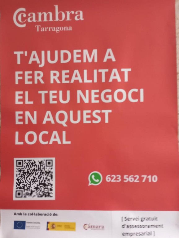 IMMOBILIARIA UNIVERSSITARI TGN............. LOCAL RECIEN REFORMADO TOTALMENTE,,.......................... SE PUEDE UTILIZAR COMO LOCAL O COMO TRASTERO PARA COLOCAR OBJETOS, VARIOS............. RECIENTEMENTE, PARA CUALQUIER ACTIVIDAD, ANTES FUE UNA PELUQUERIA. ESTA A 5 METROS DE LA OFICINA DE EMPLEO, NUEVA, RECIEN REFORMADO, PROXIMA APERTURA. MUCHAS POSIBILIDADES. DE TRANSITO DE PERSONAS, INCLUIDO EL AGUA EN EL PRECIO,. DISPONES DE AGUA Y LUZ..................SOMOS AGENCIA, NO PARTICULAR.