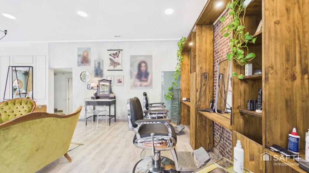 En la primera planta, un luminoso despacho, un práctico almacén y un cuarto de baño completan la distribución. Este salón, en perfecto estado, goza de una clientela fiel y de una ubicación muy solicitada.