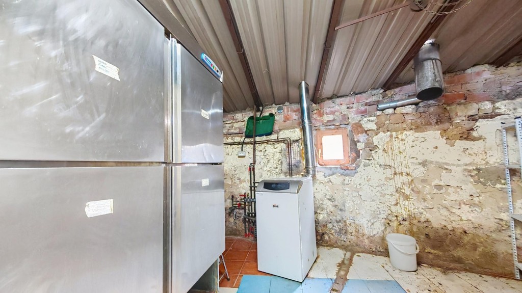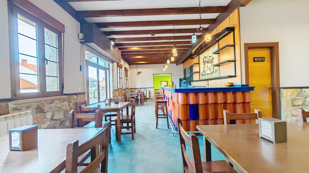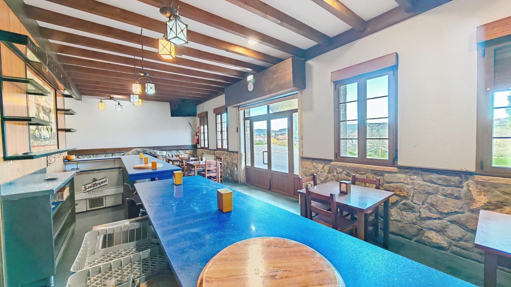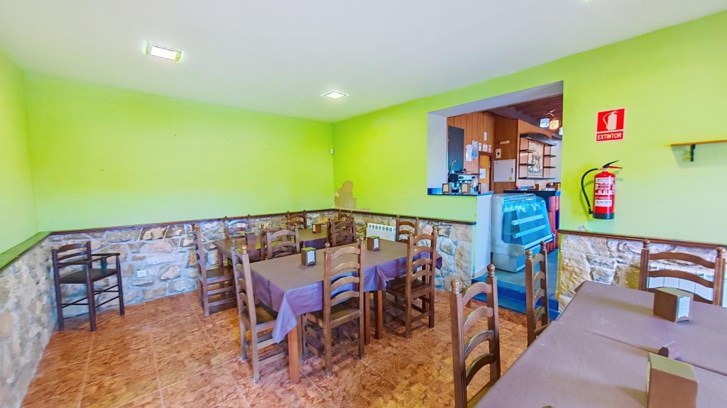 Detrás de la barra encontrarás una cocina industrial equipada con campana extractora, varias mesas de acero inoxidable y varias cámaras frigoríficas que facilitan el almacenamiento adecuado de los productos. Gracias a su ubicación y estructura, esta propiedad es perfecta para aprovechar su potencial como casa rural. La cercanía a la costa, el entorno natural que la rodea y las posibilidades de habitabilidad hacen de esta opción una de las más atractivas. Alternativamente, también puedes considerar la explotación del restaurante mientras disfrutas de la vivienda en la parte superior.