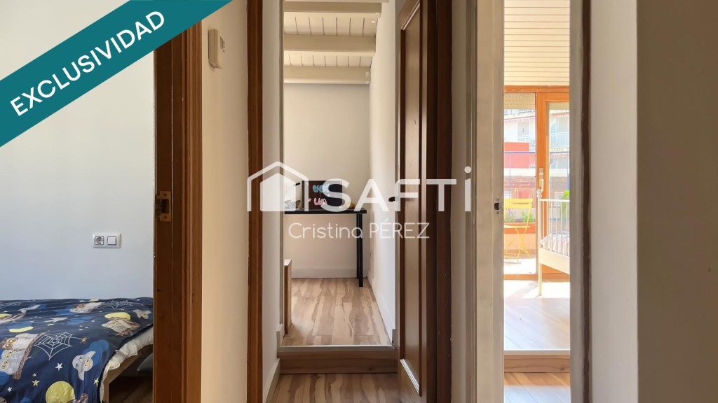 En la planta superior, nos encontramos con un práctico recibidor-vestidor, 1 lavadero, 2 habitaciones dobles y un baño completo con bañera. La joya de la corona es la habitación principal con zona vestidor y acceso directo a una encantadora terraza de 13 m².