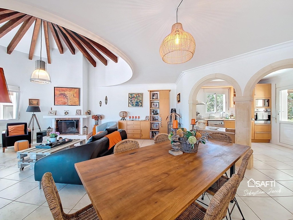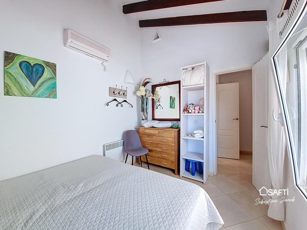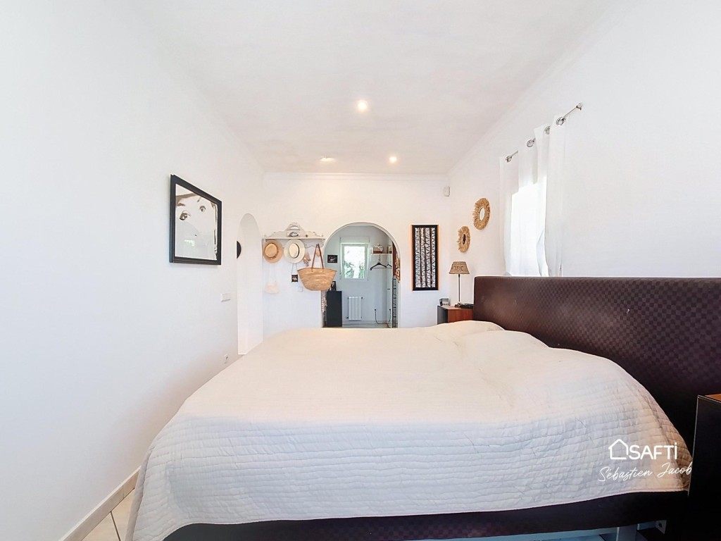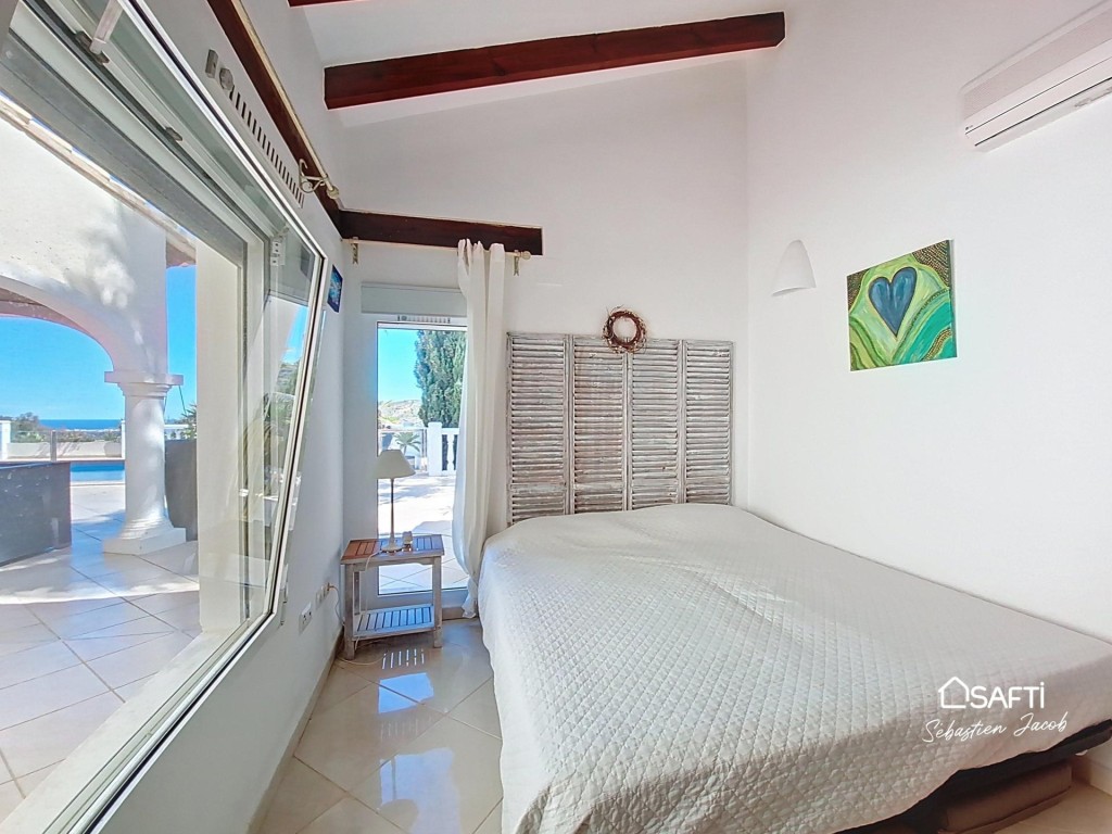 Esta vivienda destaca por su auténtico estilo mediterráneo, con vigas de madera vistas, arcos con piedra tosca y detalles tradicionales que aportan calidez y carácter.