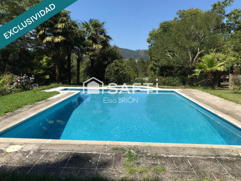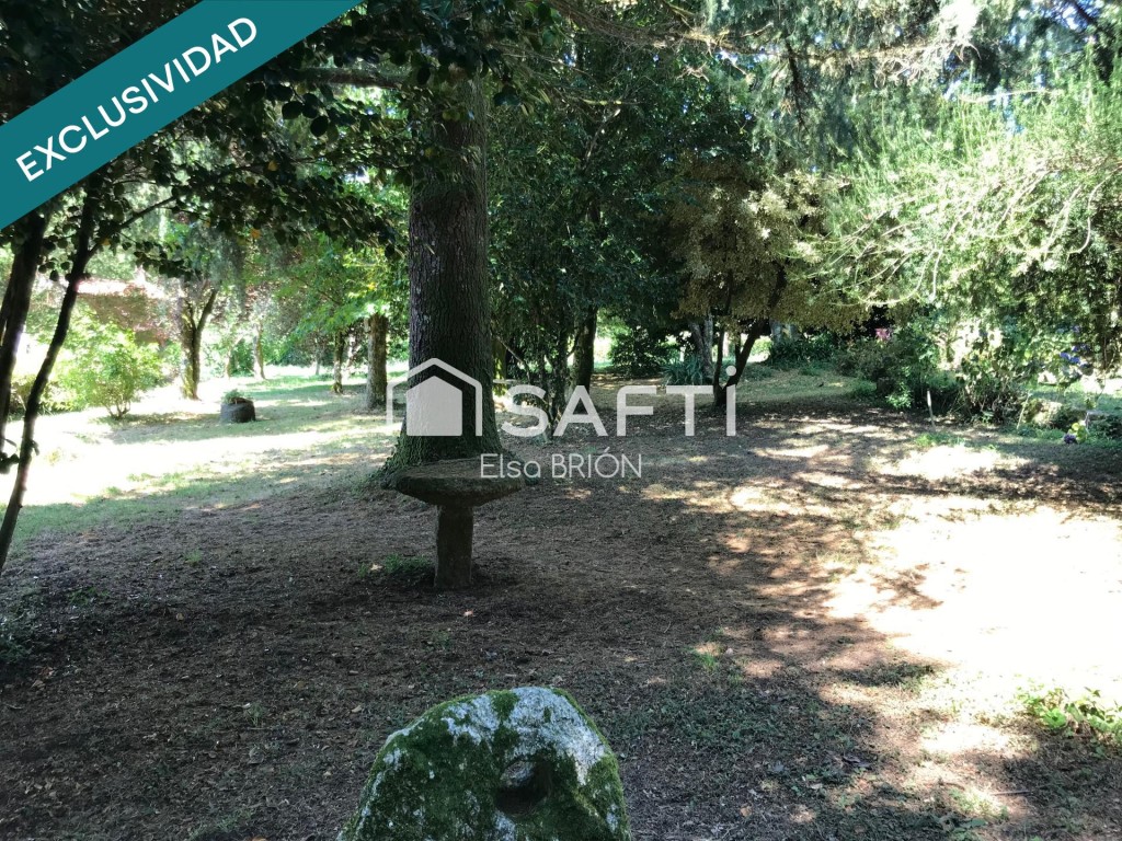 En el exterior, un amplio patio enlosado con zona de comedor cubierta, horreo, asador, mesa giratoria de piedra y una espectacular variedad de árboles autóctonos exóticos: Secuoyas, castaños, centenarios, camelias, frutales...