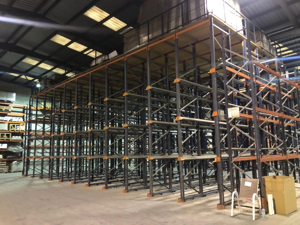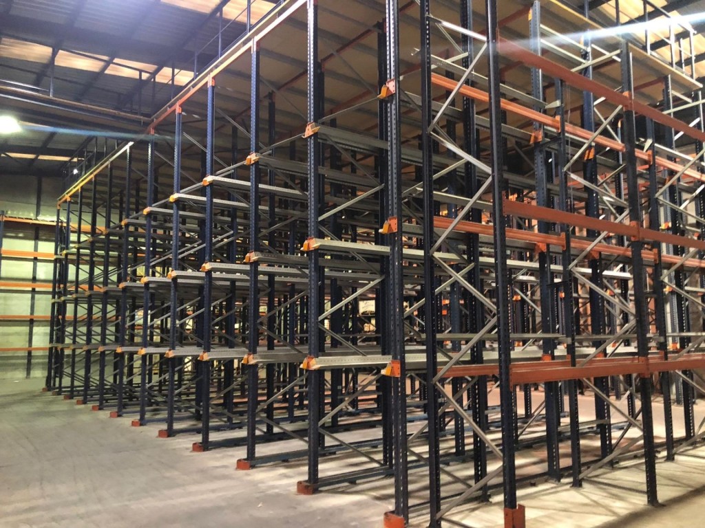 ✅ Interior equipado con estanterías Mecanlux de alta calidad, prácticamente nuevas, con 4 a 6 niveles de altura y capacidad para 1.300 pallets.